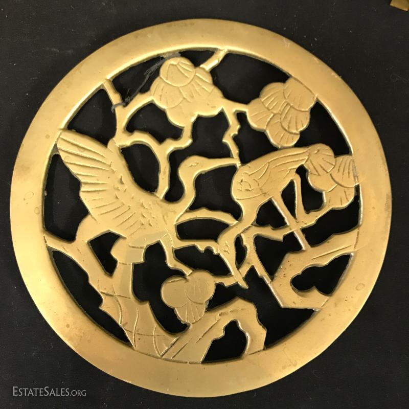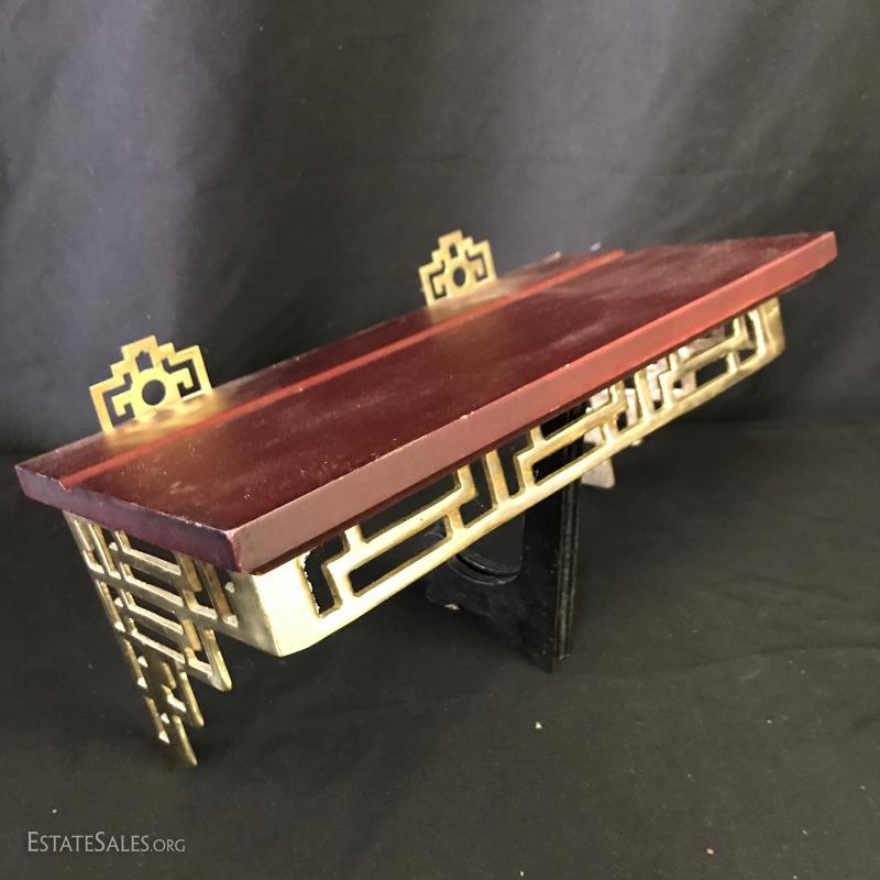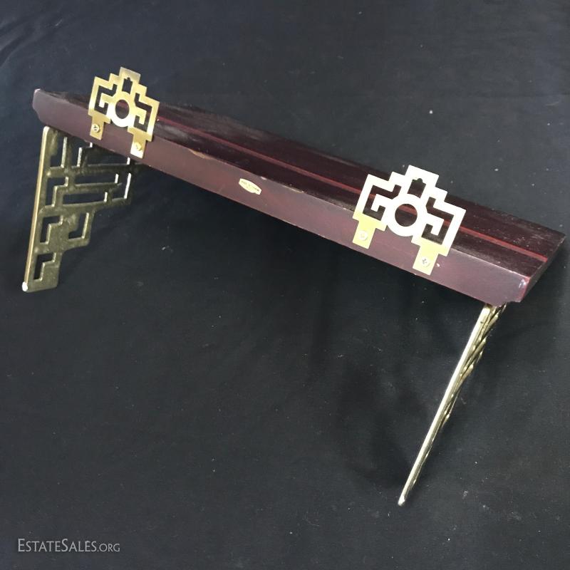 Lot 128 - Brass and Wood Shelf, Trivet and More