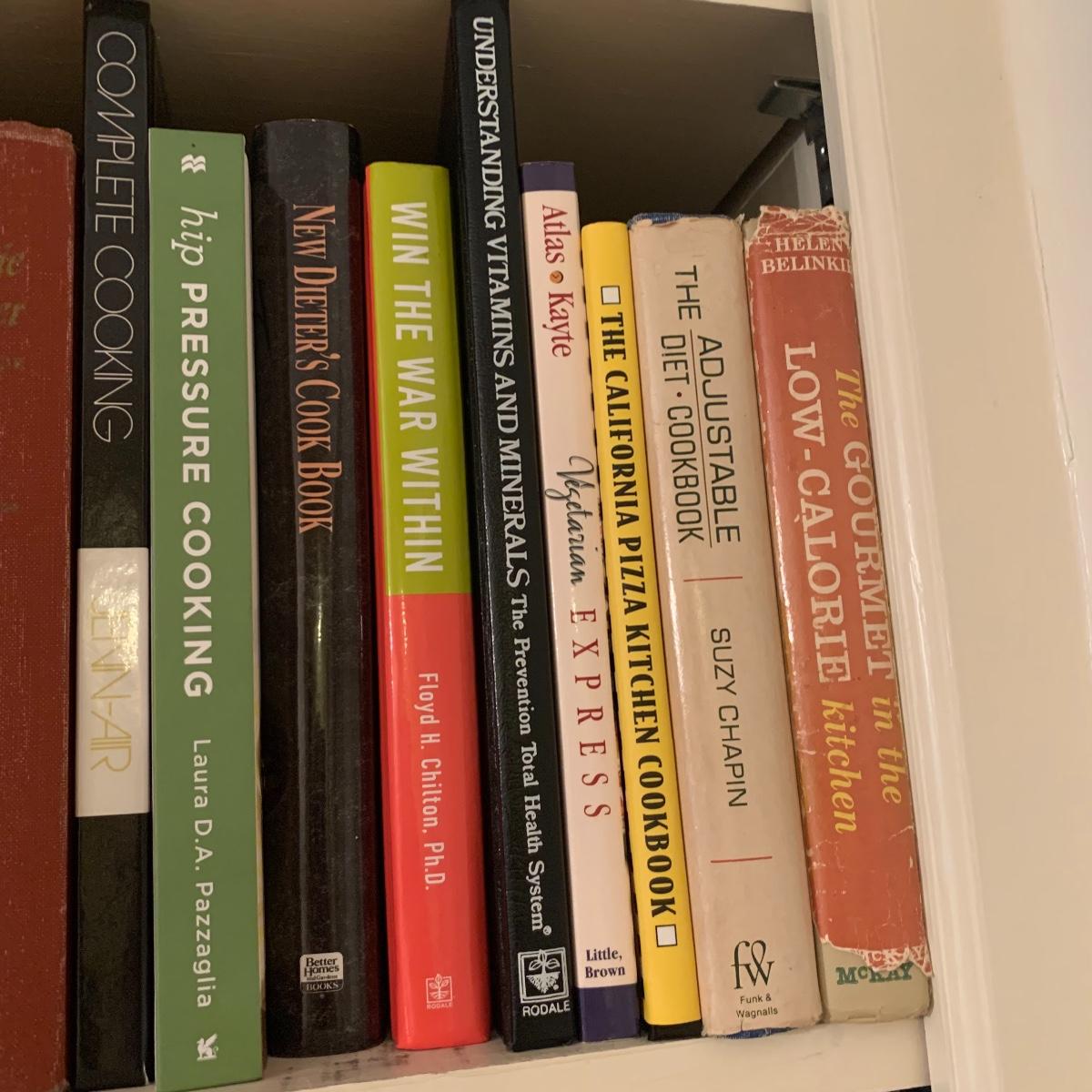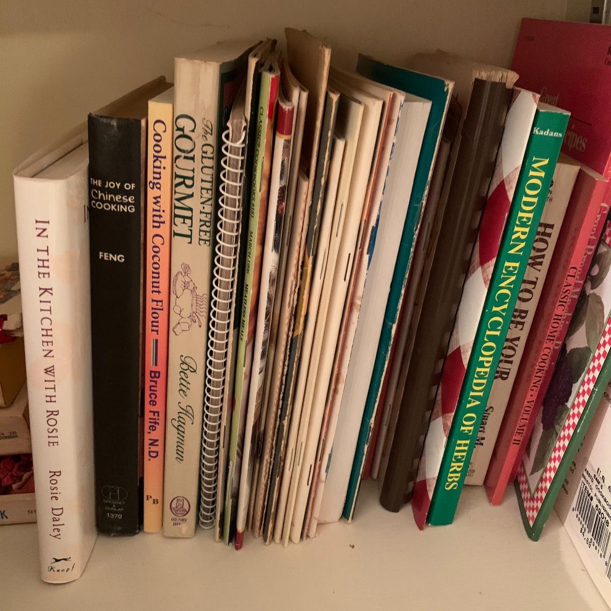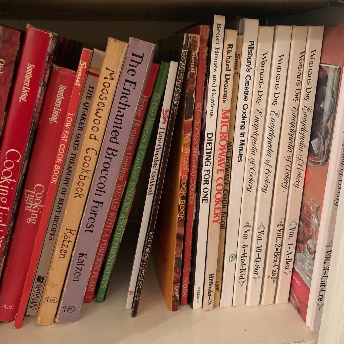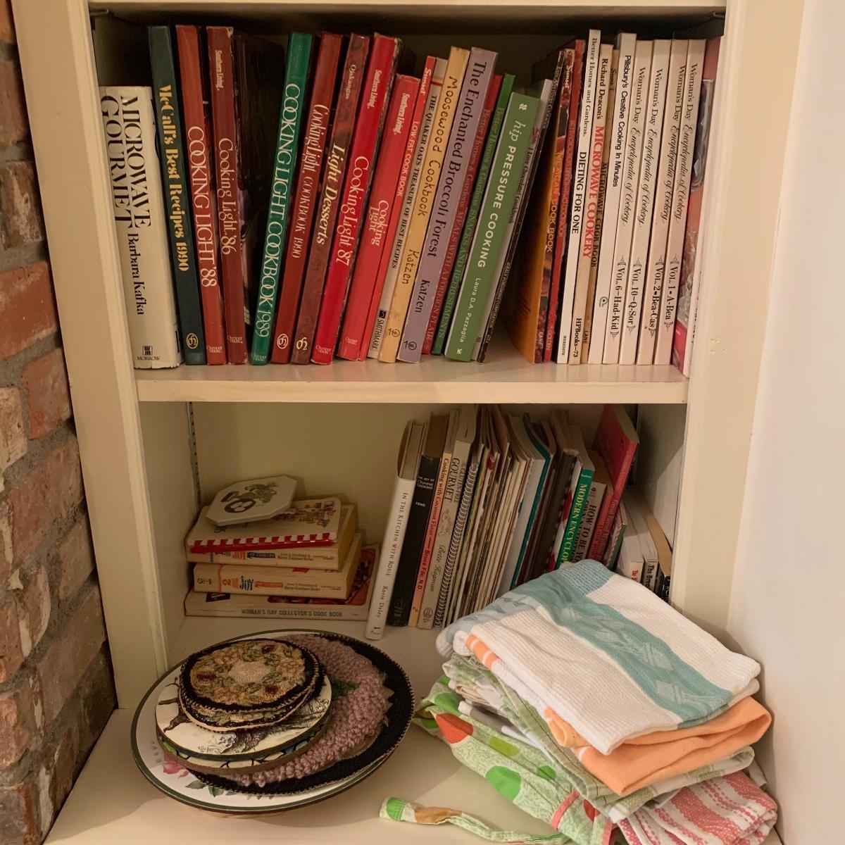 This lot includes hundreds of cooking related books that provide insight on healthy eating or other eating habits and recipes. The lot also includes hot plate mats, hand towels, two aprons, and more. Local Pickup Only