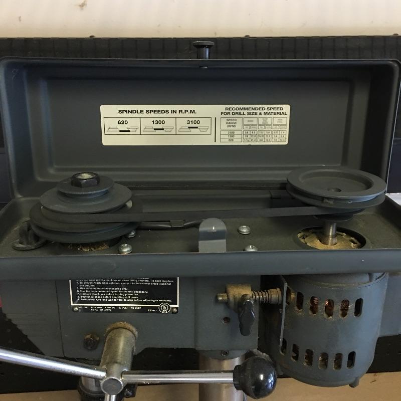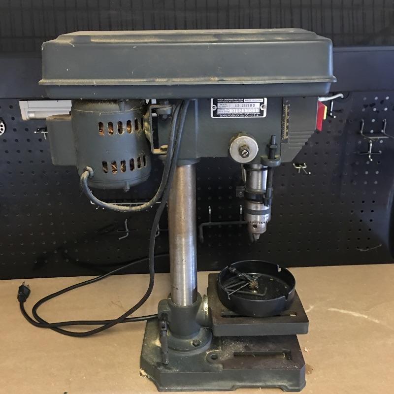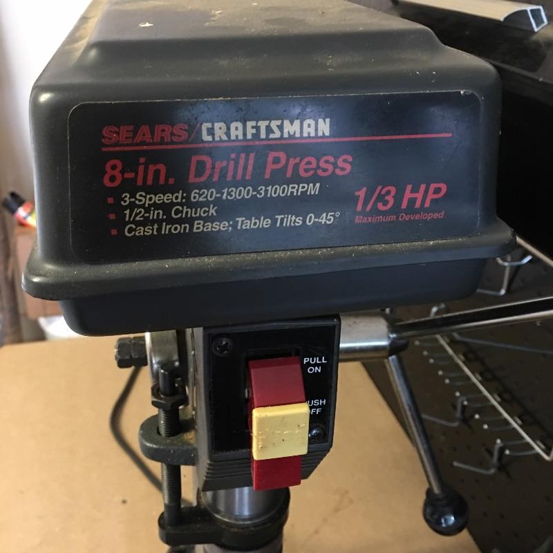 Craftsman three speed 8” drill press with 1/3 HP motor. Great for all the precision drilling you need to get done. Item was plugged in and appears to work. Drill measures 7” x 17” x 23”. Bench not included.