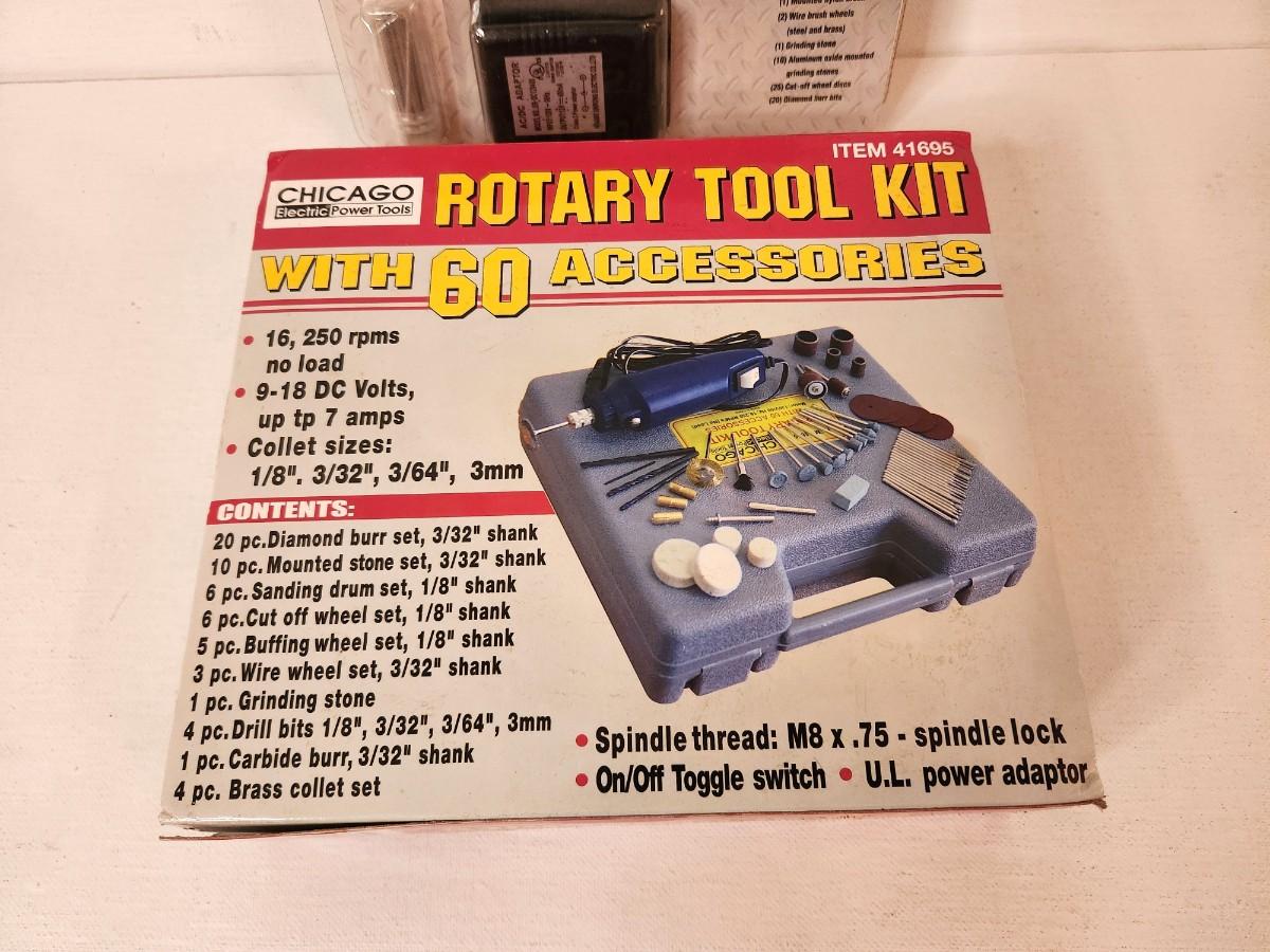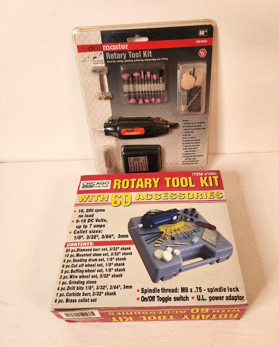 You get all you see here - Drill Master Rotary Tool Kit and Chicago Rotary Tool Kit w/60 accessories, both new in box.