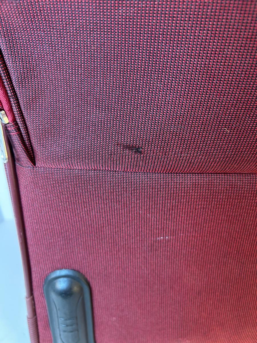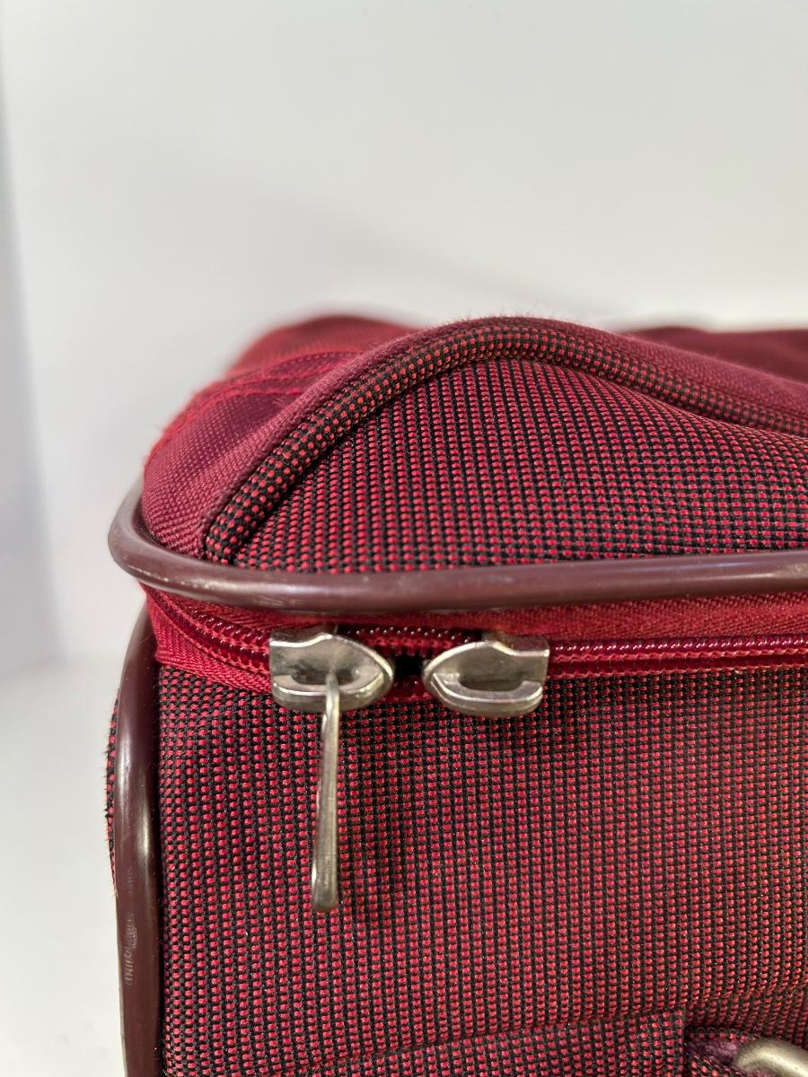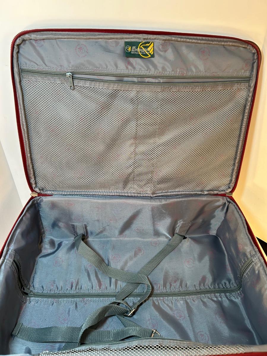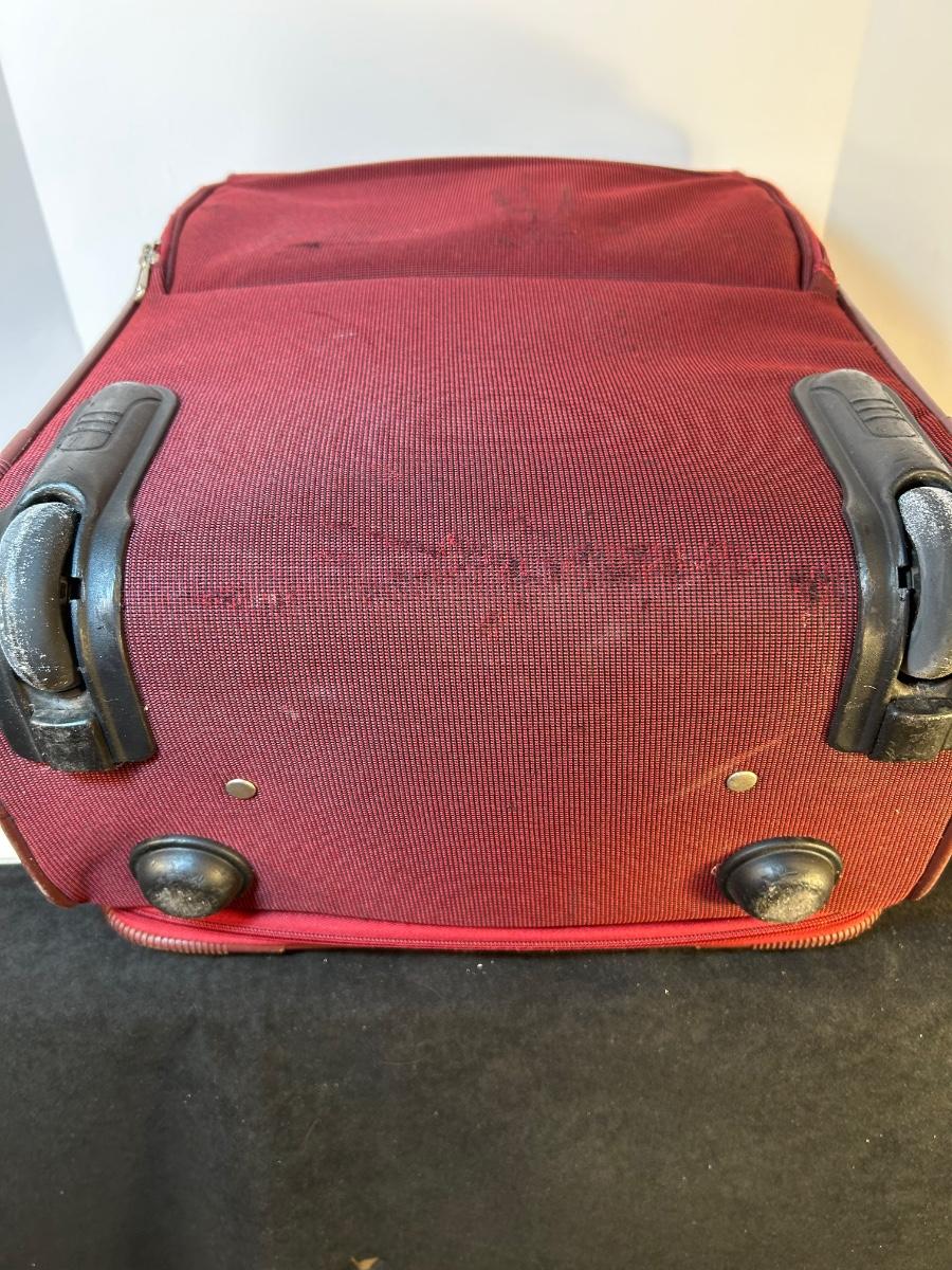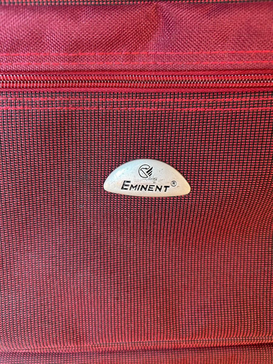 20" x 14" x 9" Eminent expandable burgundy rolling suitcase.