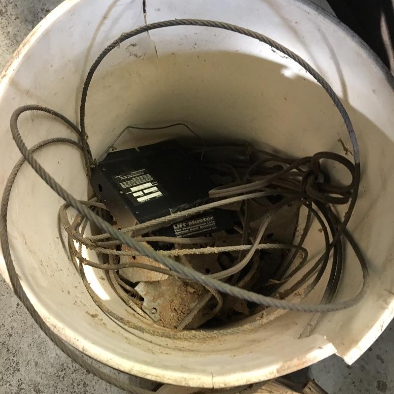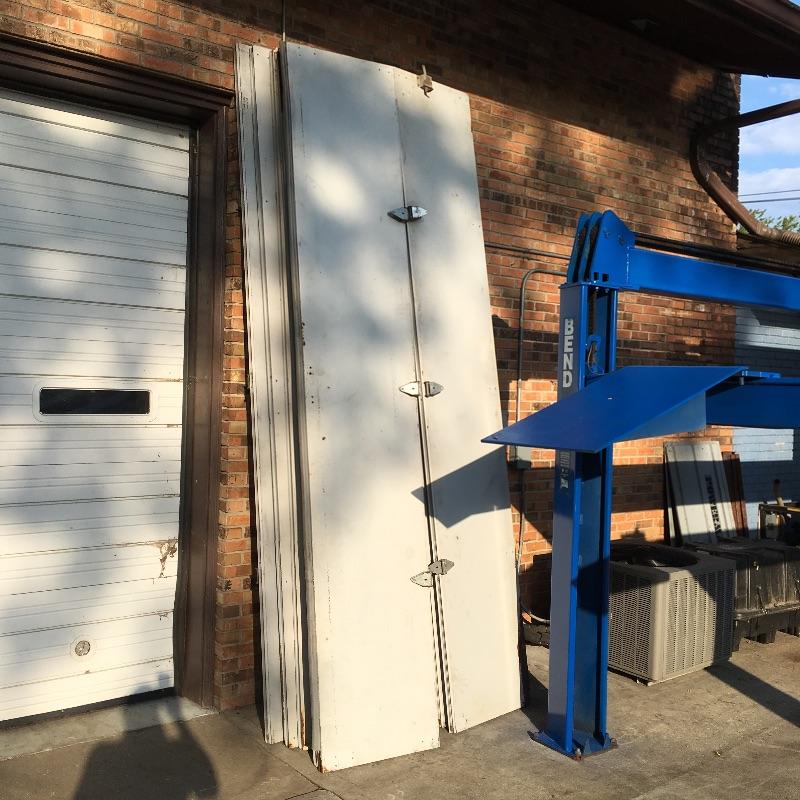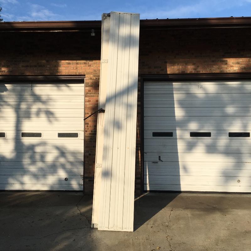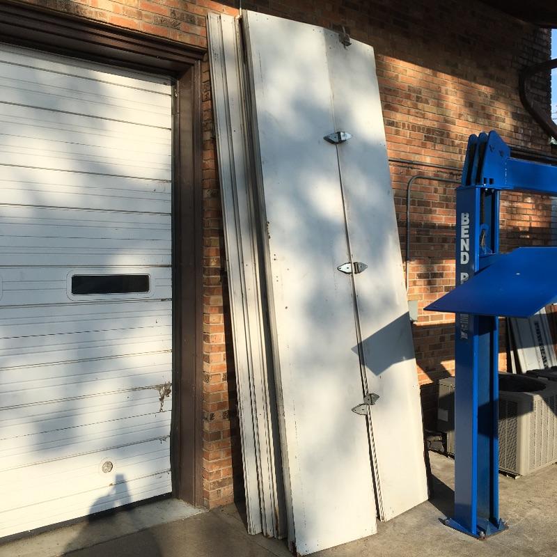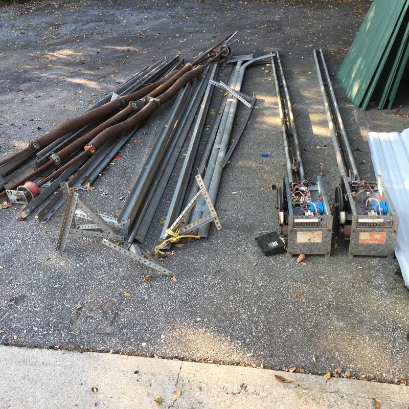 Garage doors and openers include five 24” x 170” panels that are hollow with insulation and twelve 24.25” x 134” that seem to be wood that is covered with metal also included are two Overhead Door openers, springs, runners and many other accouterments for the garage doors.