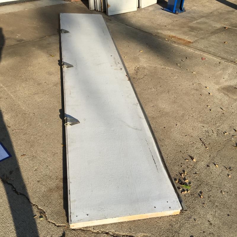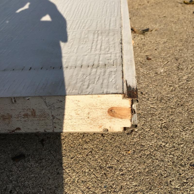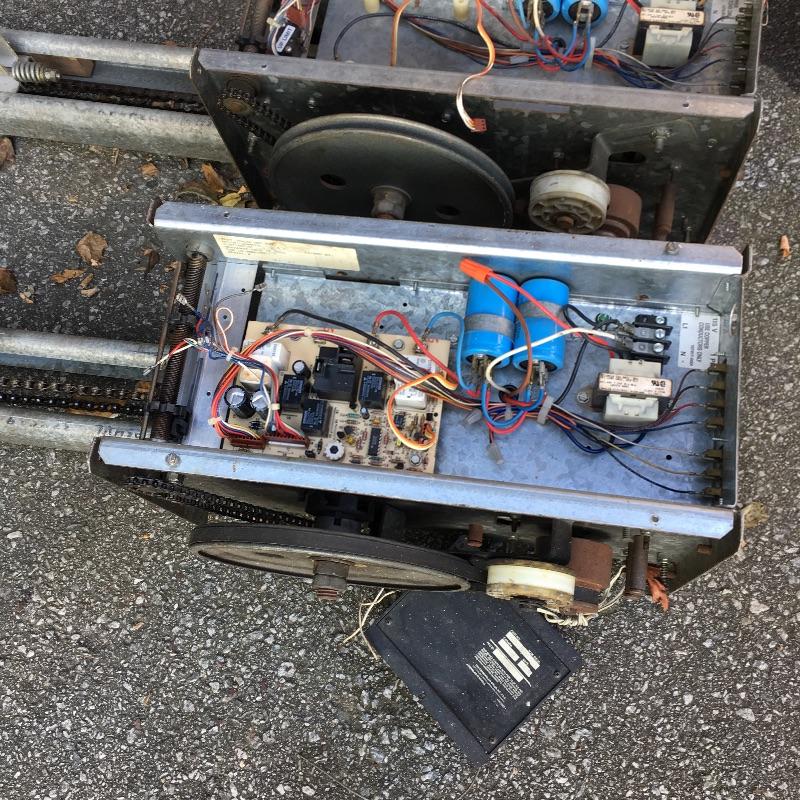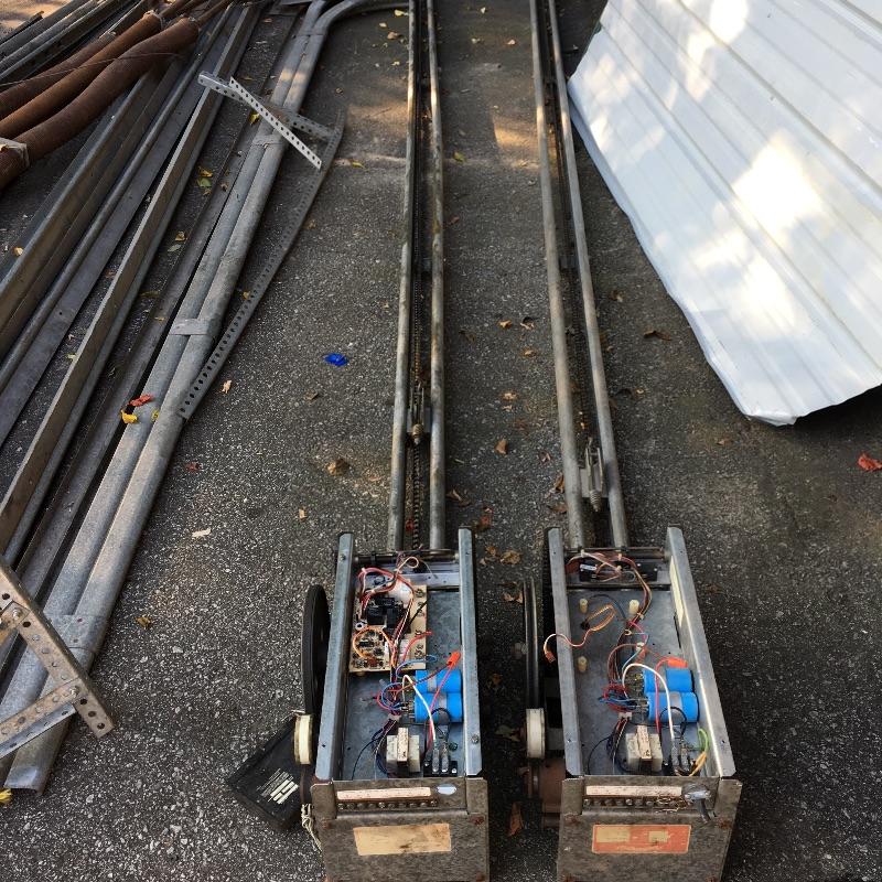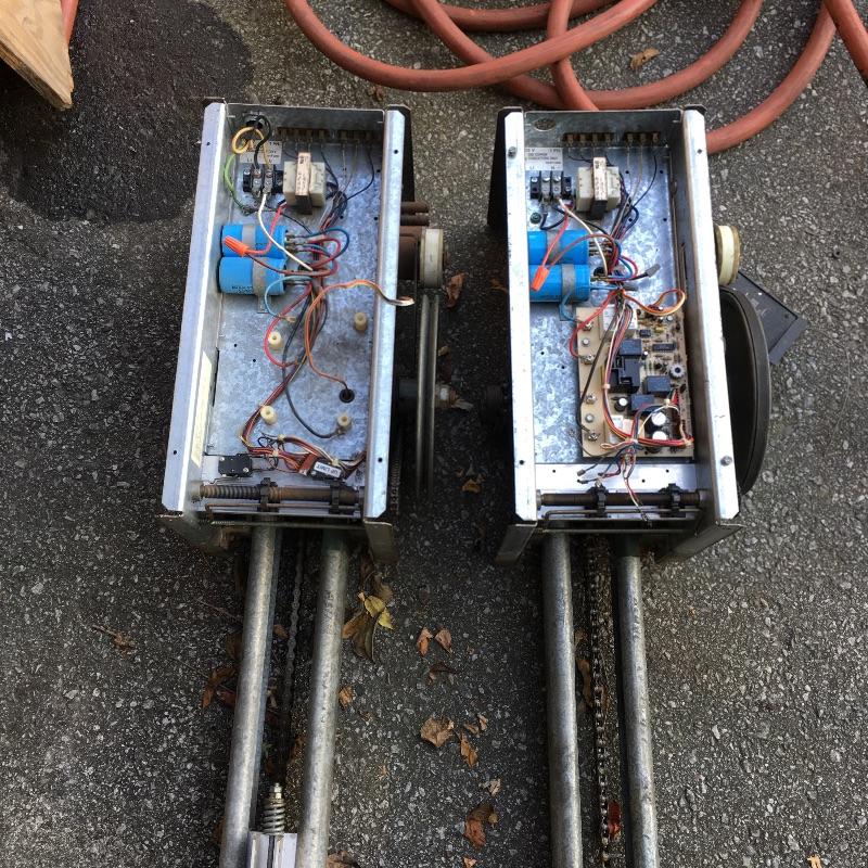 Garage doors and openers include five 24” x 170” panels that are hollow with insulation and twelve 24.25” x 134” that seem to be wood that is covered with metal also included are two Overhead Door openers, springs, runners and many other accouterments for the garage doors.