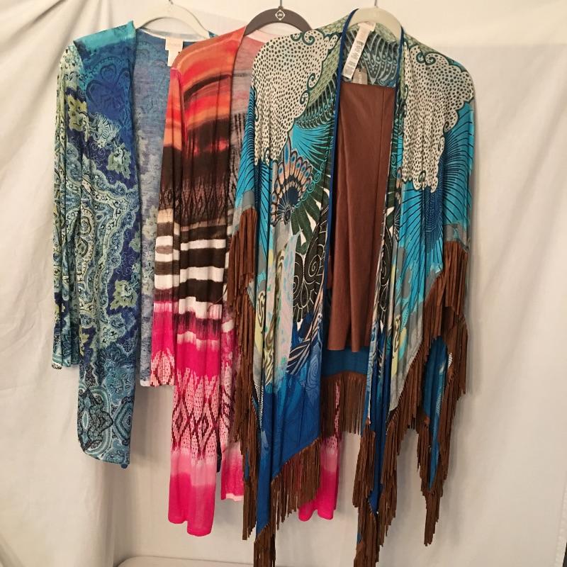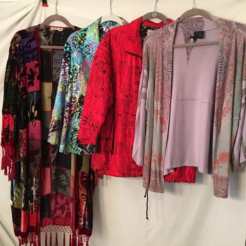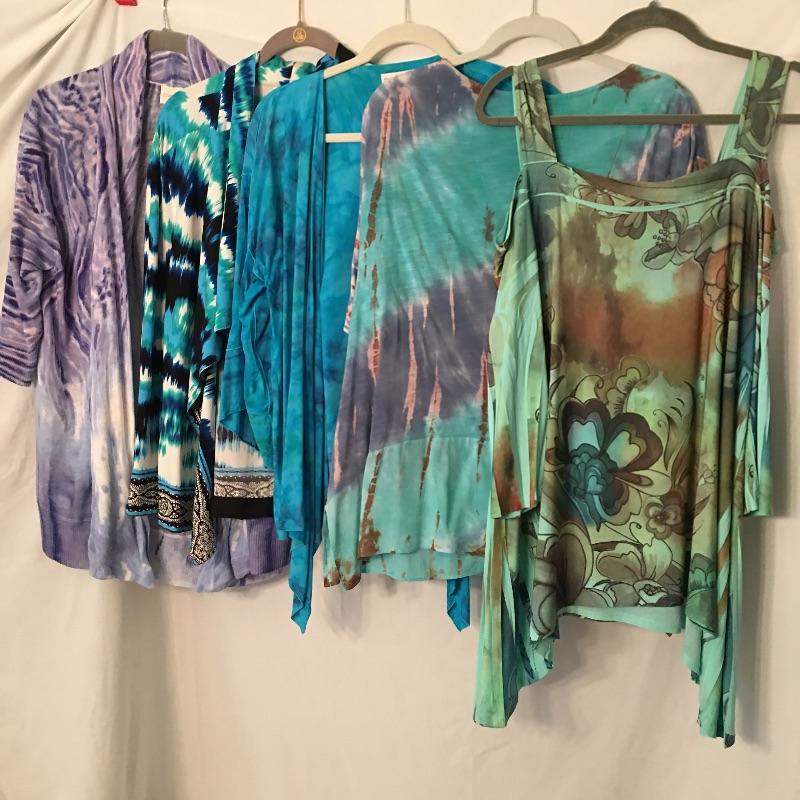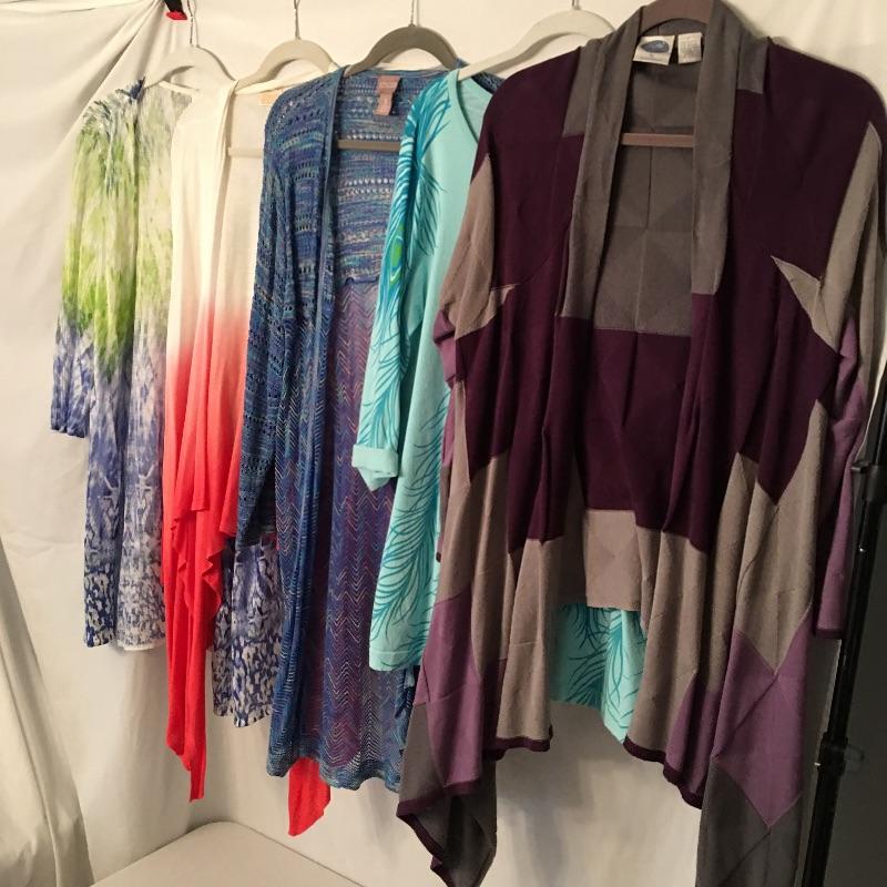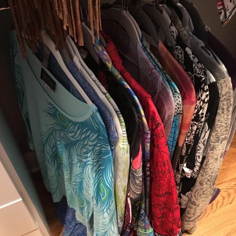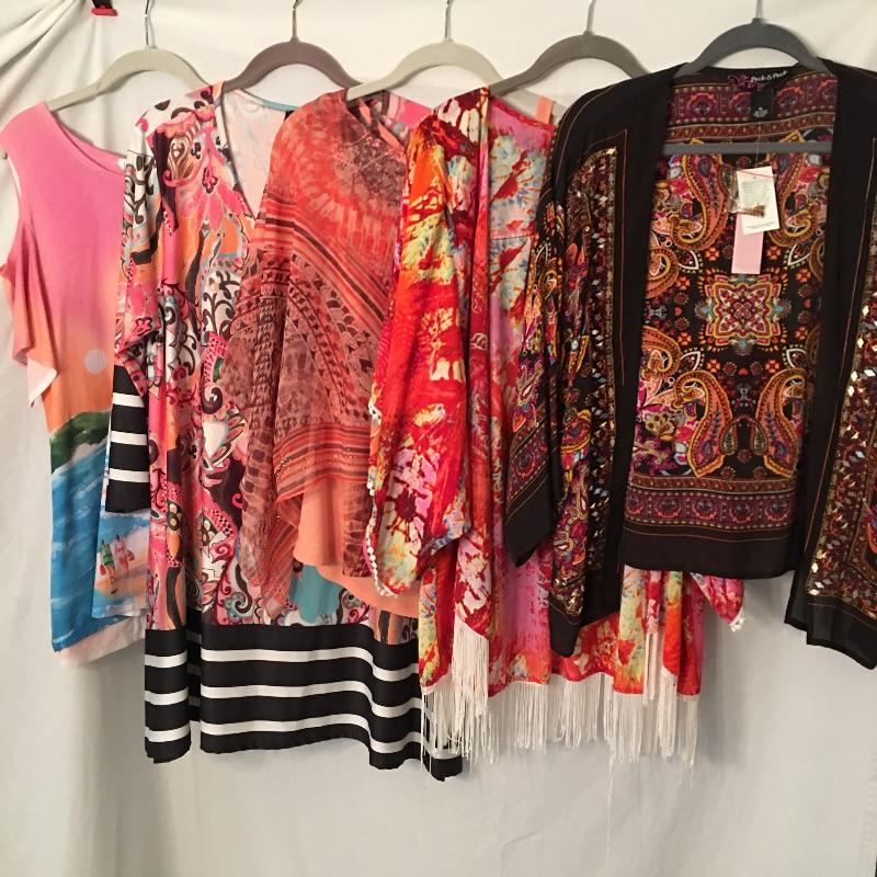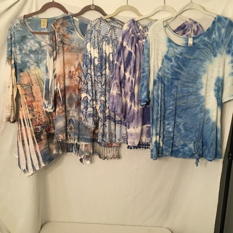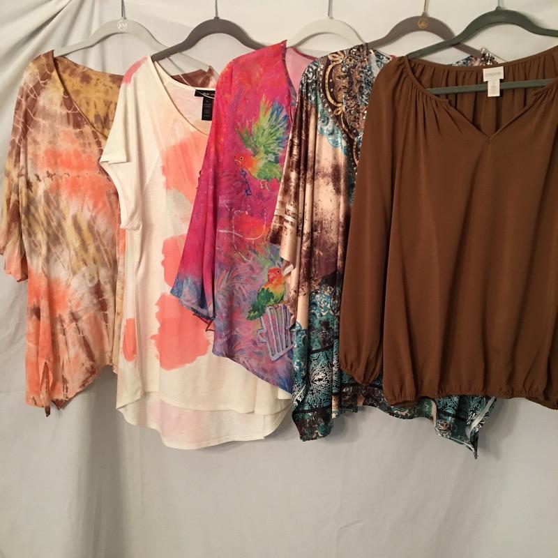 A substantial wardrobe in itself here with over fifty five tops with some fabulous name brands. Included brands are Chicos, Travel Elements, Peck and Peck, Red, Melissa Paige and more. Tops range in sizes from a Chico's size two to XL. See photo's for more details.
