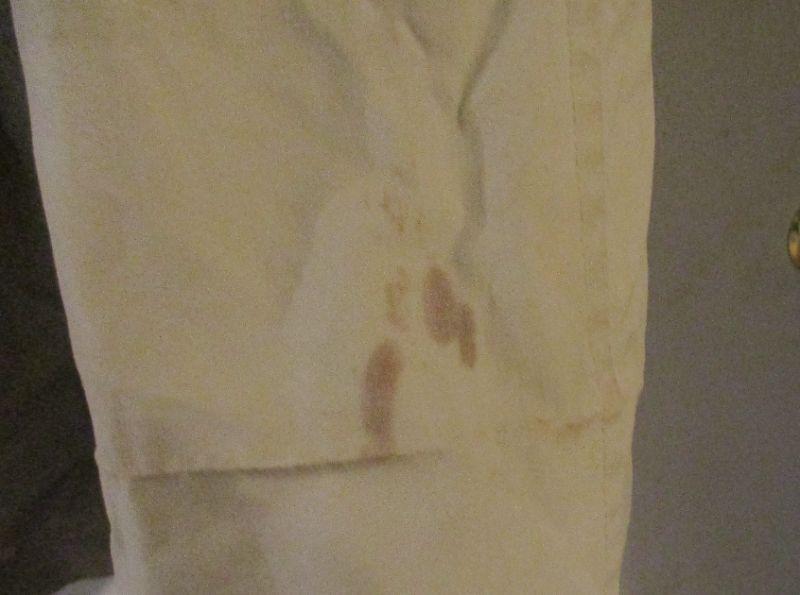 The main issues with this coat is that the hem needs to be re-hemmed (that's why it looks off on the bottom). The hem is in good shape, but it needs to be re-done. There is also a spot on the bottom right at the hem fold. It is size 8 Regular.