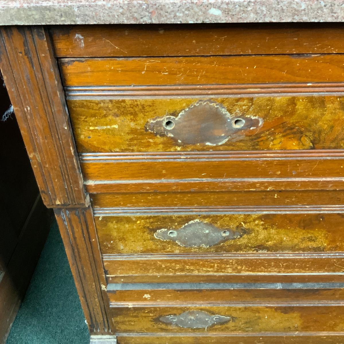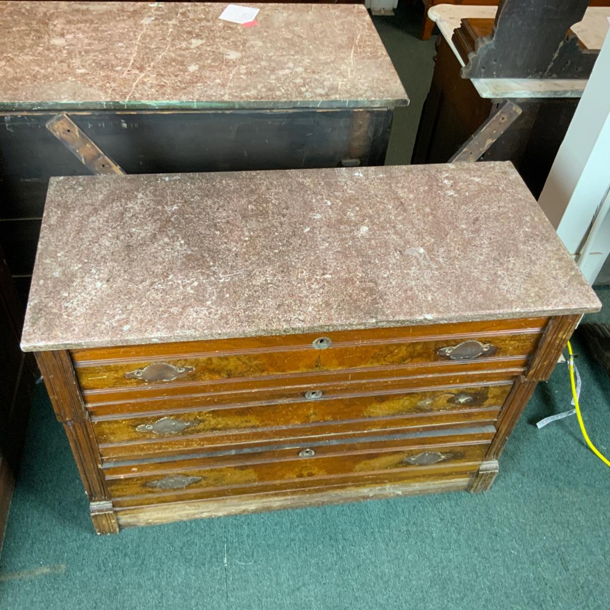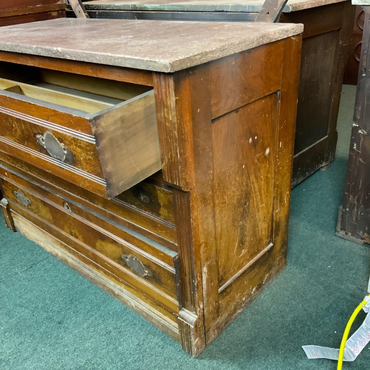 Marble Top Commode. Solid piece. Please see photos for details and condition. //::\\ Please see photos for details and condition. No attempt has been made to hide any imperfections. All items listed in this auction are warehouse items, and need to be cleaned. A majority of the items need restoration as well. All items are sold AS IS and WITHOUT GUARANTEE. If you are uncertain about an item, DO NOT BID. Due to the nature of this online auction in-person inspection is HIGHLY recommended. All Sales are FINAL. Pick Up Times are FIRM. Please confirm with your own schedule that you can pick up in the scheduled times listed in the Terms and Conditions. Any questions please message the auctioneer. DO NOT Contact The Harp Gallery.