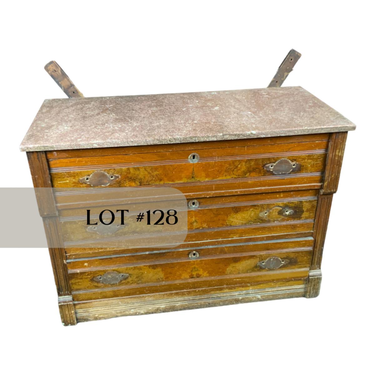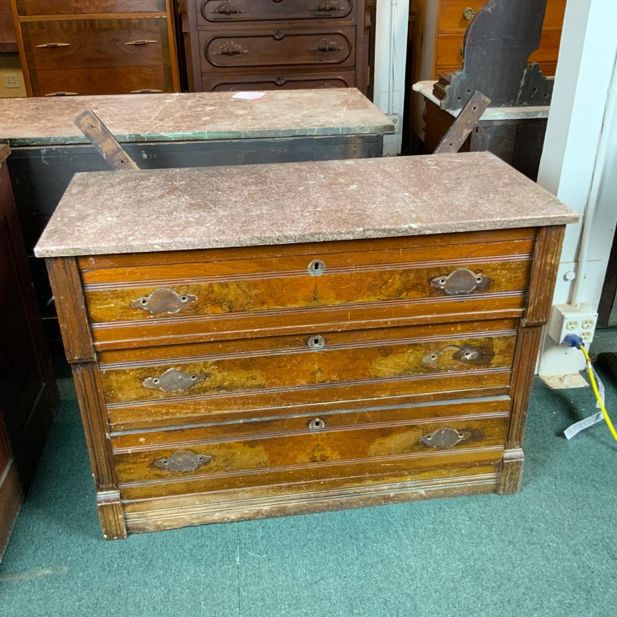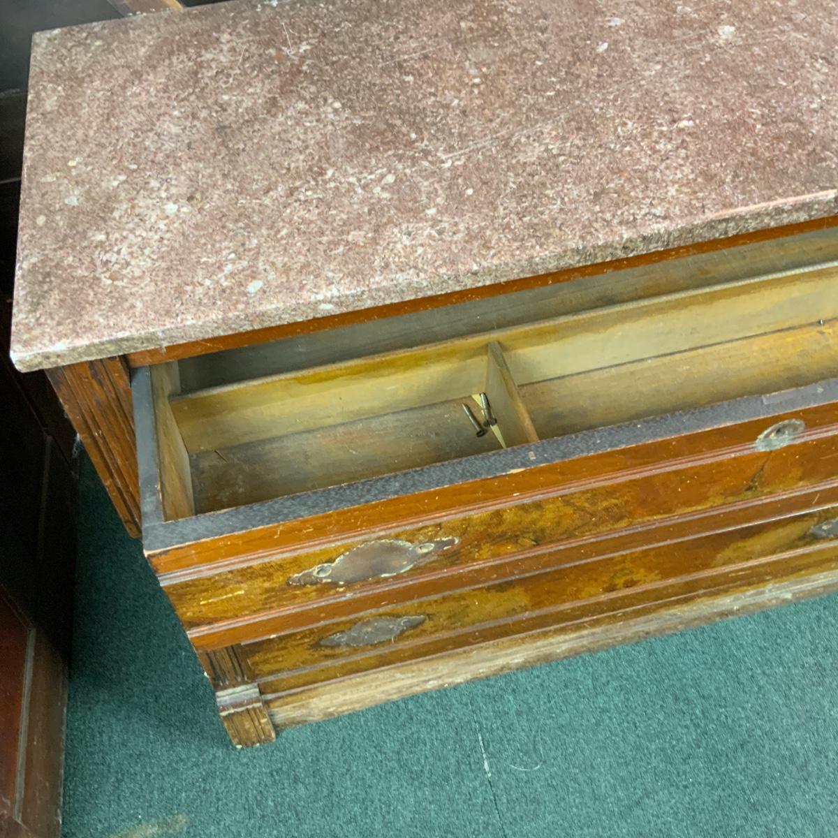 Marble Top Commode. Solid piece. Please see photos for details and condition. //::\\ Please see photos for details and condition. No attempt has been made to hide any imperfections. All items listed in this auction are warehouse items, and need to be cleaned. A majority of the items need restoration as well. All items are sold AS IS and WITHOUT GUARANTEE. If you are uncertain about an item, DO NOT BID. Due to the nature of this online auction in-person inspection is HIGHLY recommended. All Sales are FINAL. Pick Up Times are FIRM. Please confirm with your own schedule that you can pick up in the scheduled times listed in the Terms and Conditions. Any questions please message the auctioneer. DO NOT Contact The Harp Gallery.