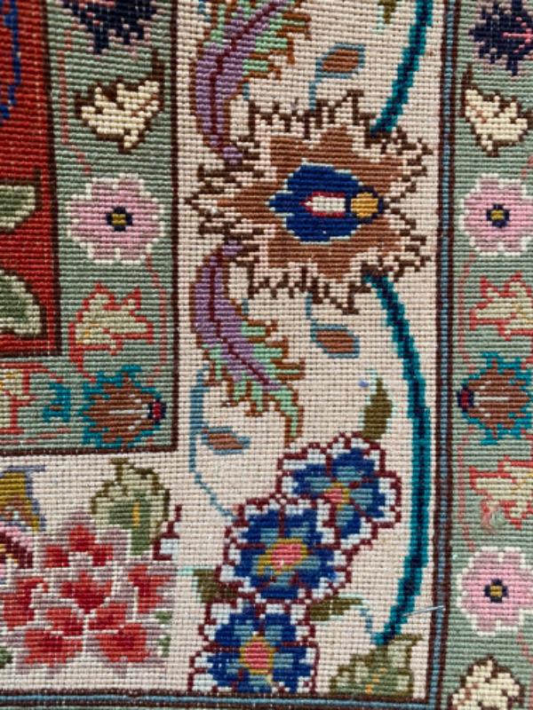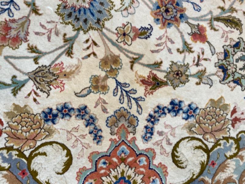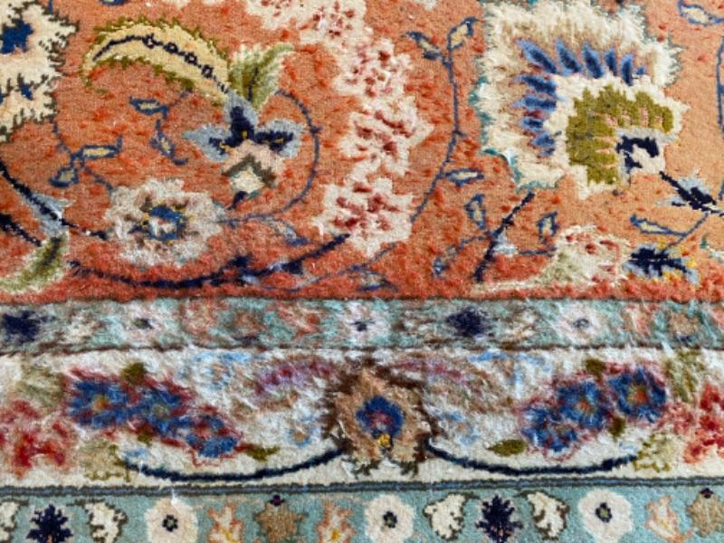 Beautiful Wool Oriental Tabriz Rug with some wear spots and one visible stain.