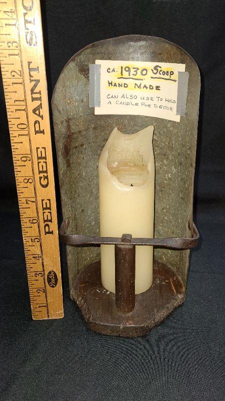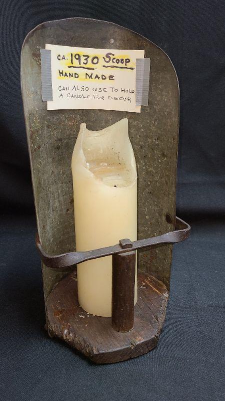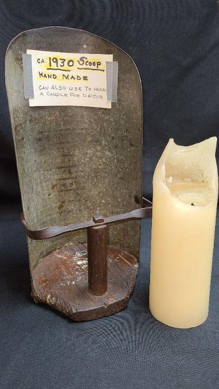 This is unique and large! Primitive scoop used as decor! Please see all pictures for measurements, condition of the item/s, and the contents if listed as a lot. Pictures are the best representation of the item. Thank you for looking and have fun bidding! We appreciate our Treasure Hunters!