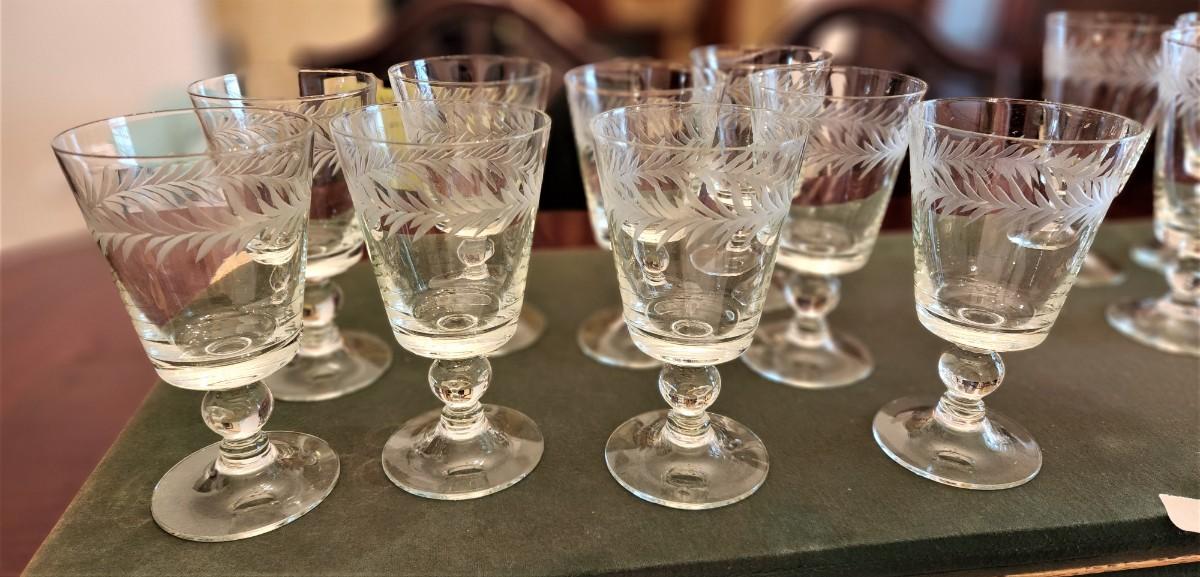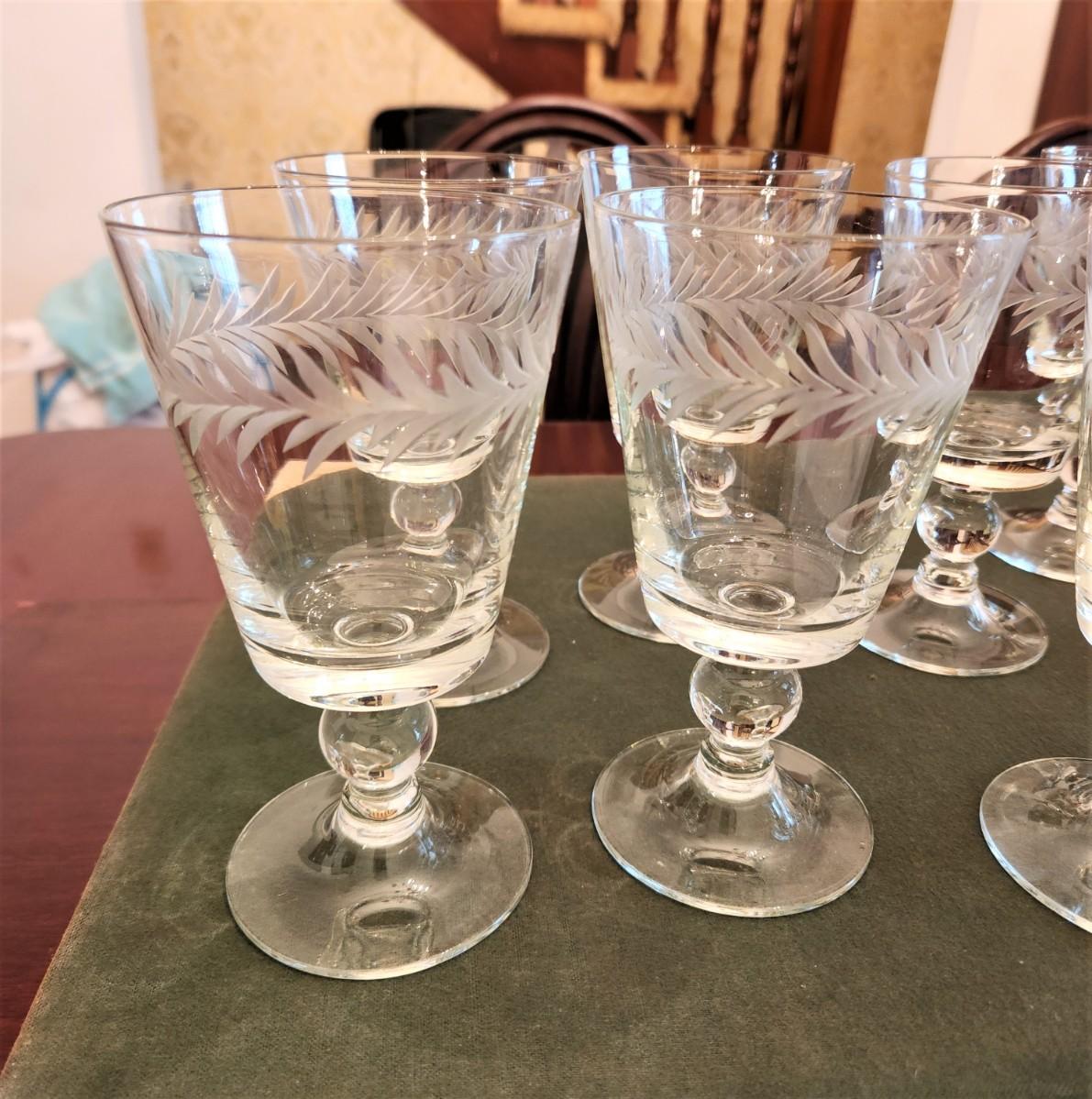Lot #128  Set of 8 Vintage Etched Crystal Water Glasses