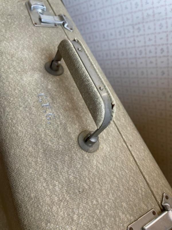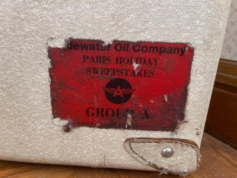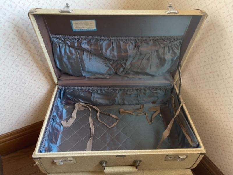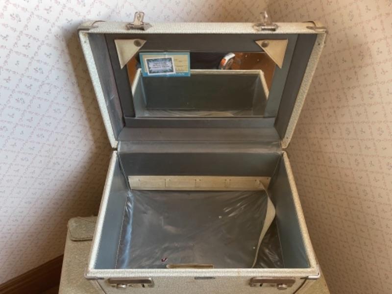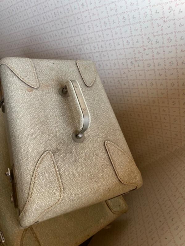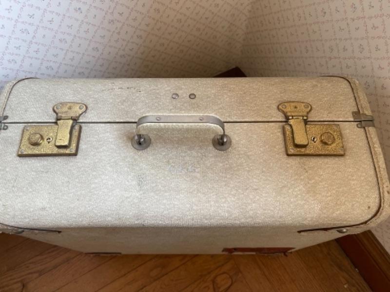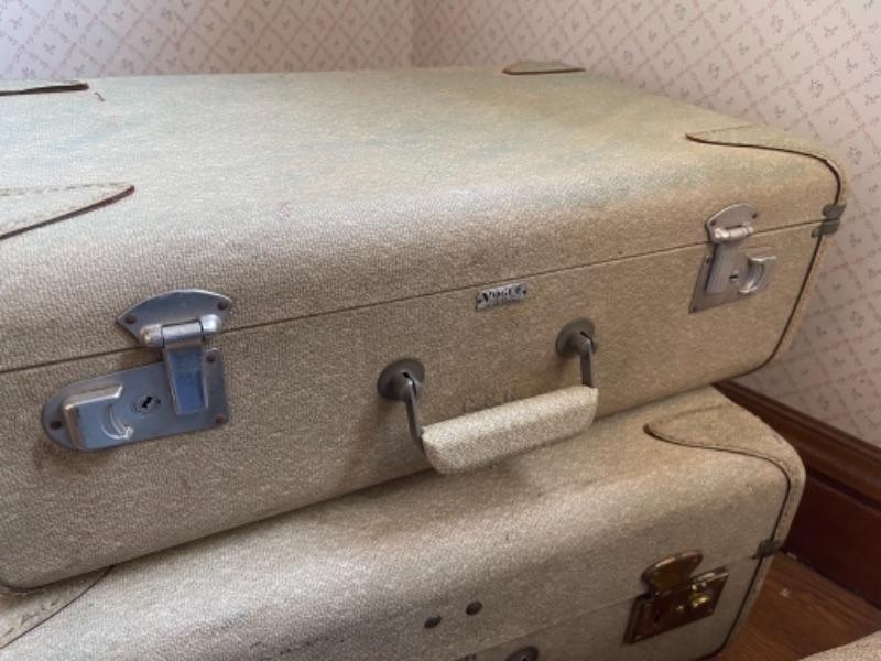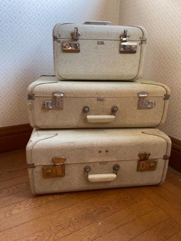 Lot 128. Set of three vintage 1950s Vogue white suitcases--$65
