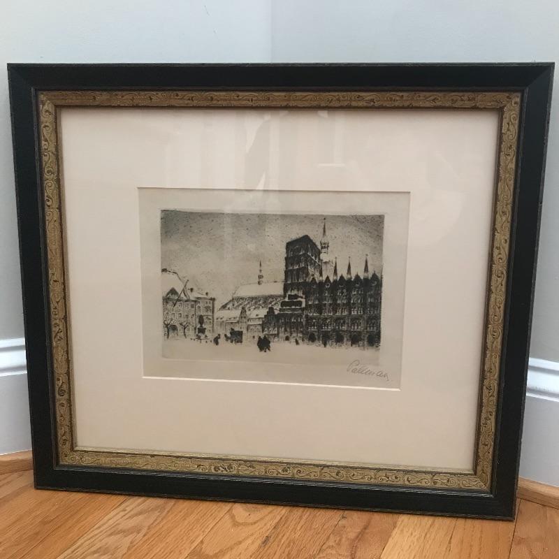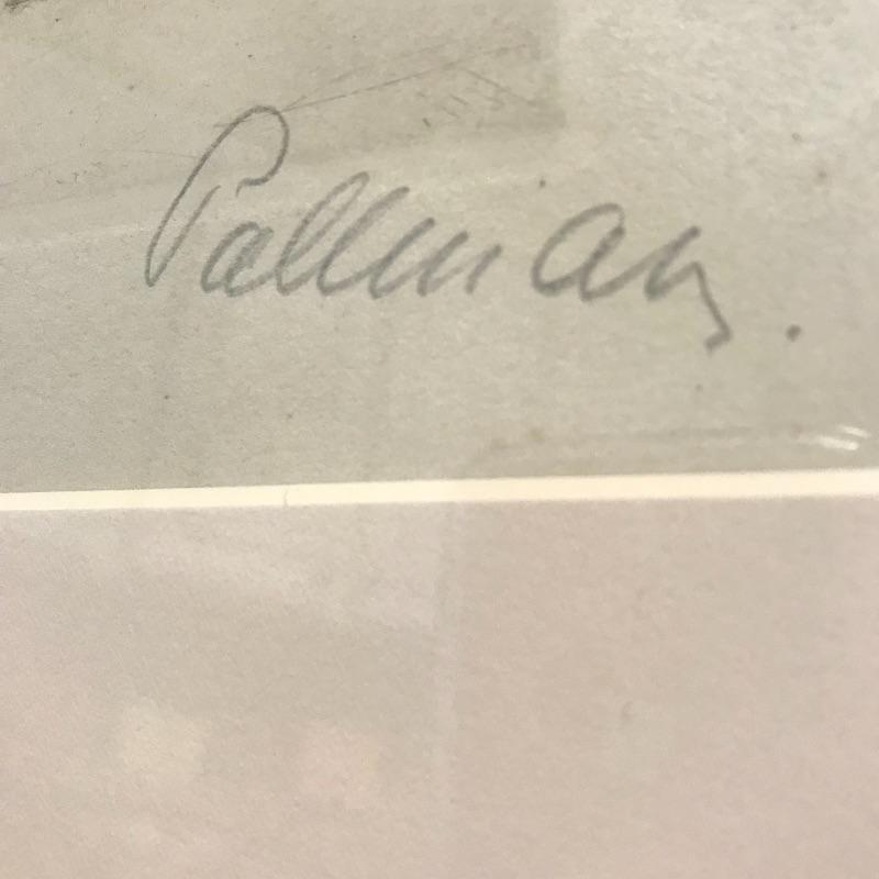 This lovely matted and framed drawing is signed as pictured and tag on back says Pellman but cannot verify. Frame measures 21.5” x18.5”. Actual art measures 9.5” x6”. Shipping available but be aware shipping art can be costly, so please call UPS Store for a shipping quote prior to bidding.