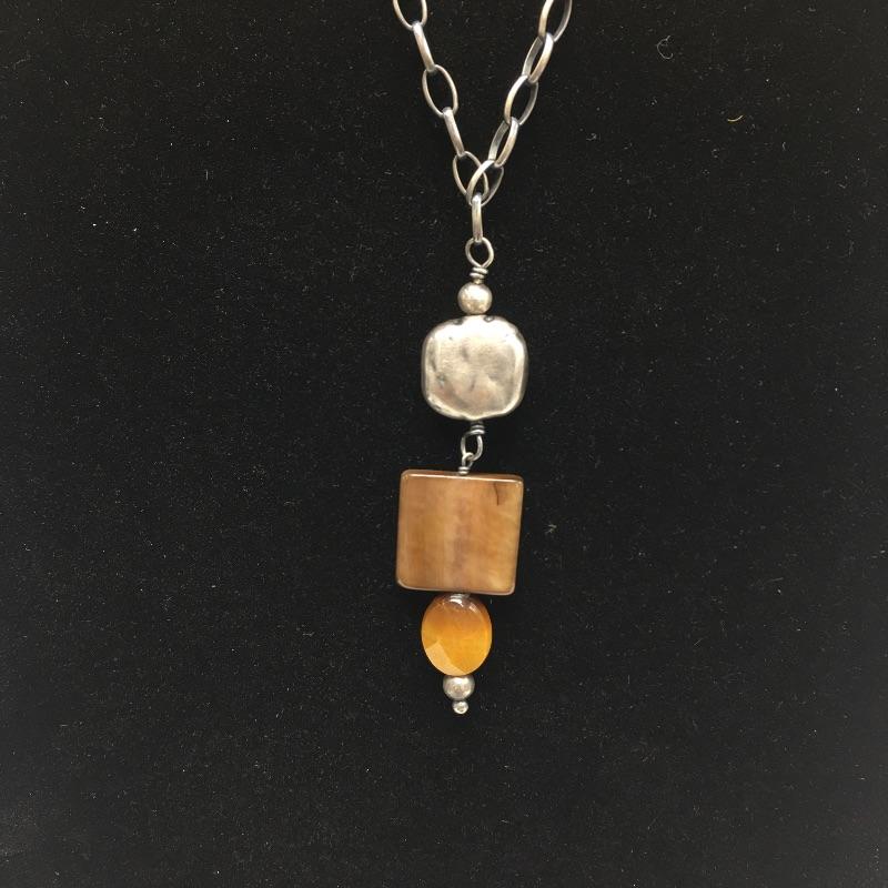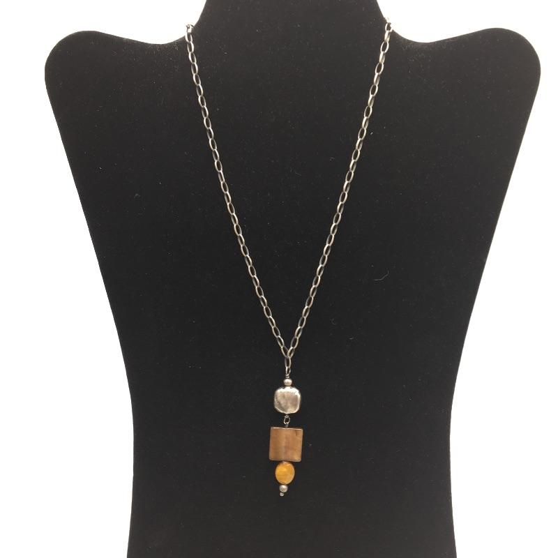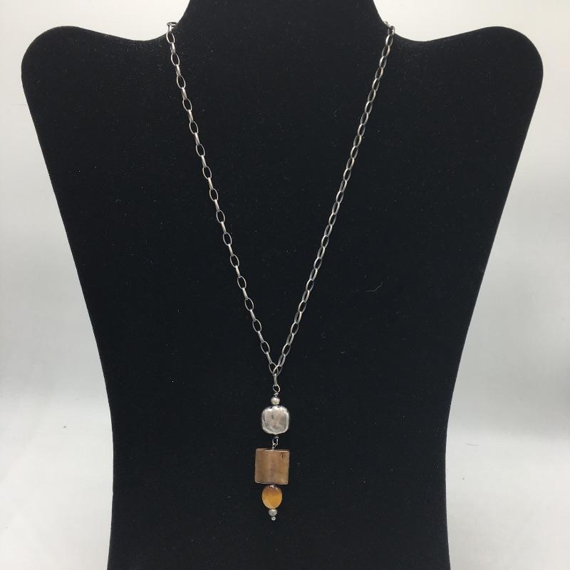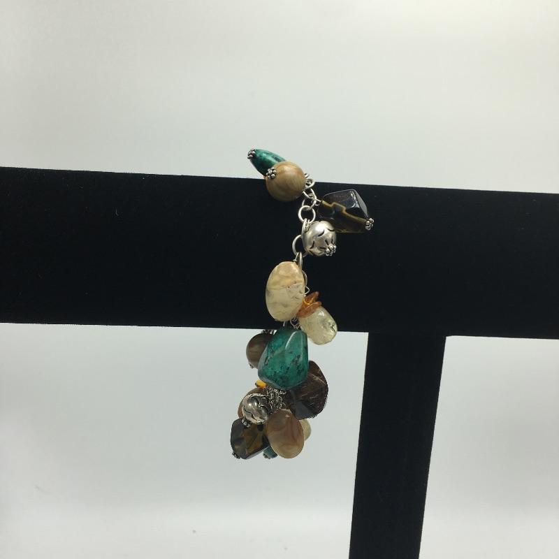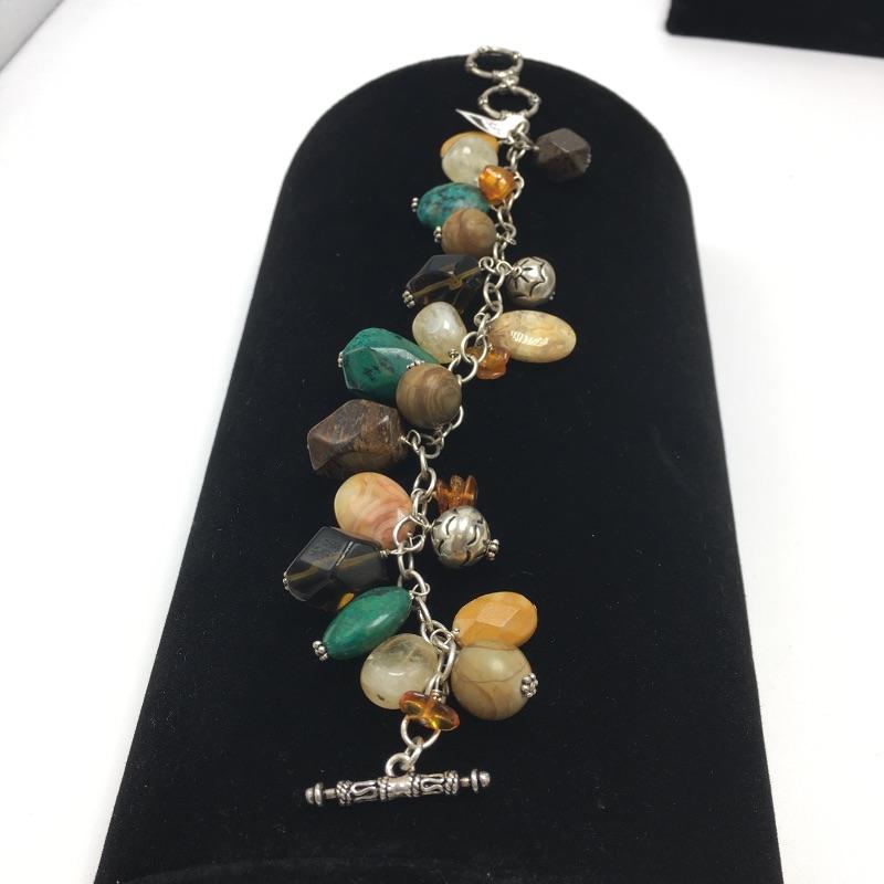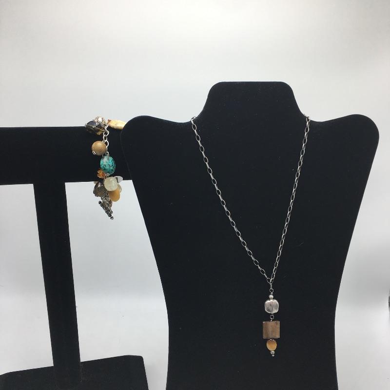 Silpada lot includes faceted tigers eye bead, mother of pearl and hammered and oxidized sterling silver link necklace with a lobster clasp that measures 16.5” long and a oxidized sterling silver bracelet with smoky quartz, stabilized turquoise, rock crystal, quartzite, chalcedony, bronzite, Amber, crazy lace agate and an adjustable toggle clasp, fits up to an 8” wrist.