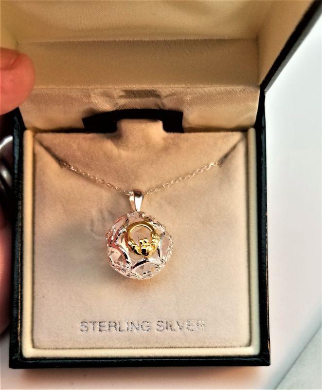 Lot #128 SOLVAR Sterling Silver & 18kt gold plated Spiral Claddagh Pendant on chain