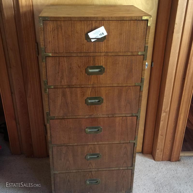 Lot 128  - Tall chest of drawers with brass fixtures.