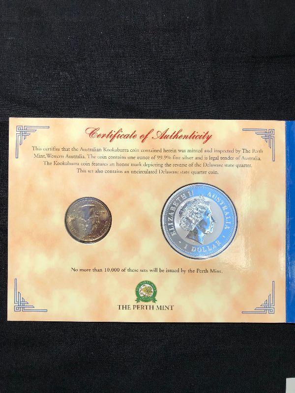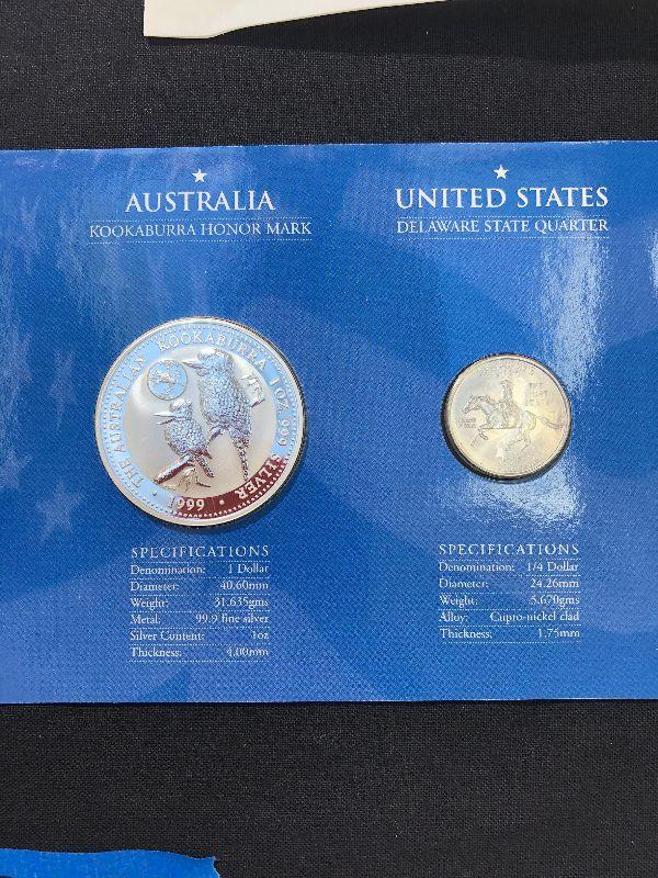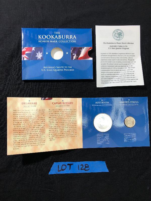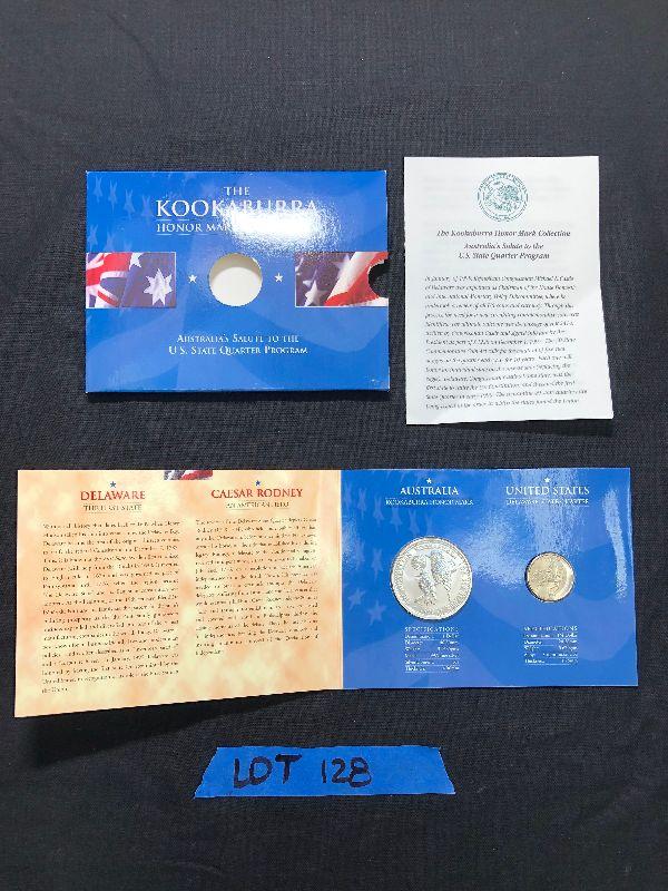 Lot 128 - The Kookaburra Honor Mark Collection Coins (Australian Honor Mark and the Delaware State Quarter)
