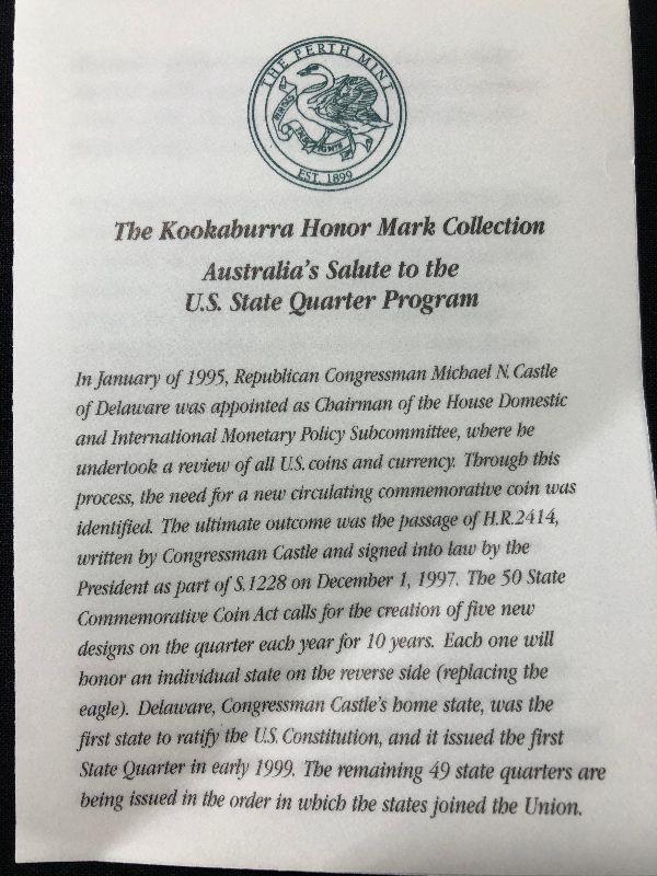Australia's Salute to US State Quarter Program. Set contains the Australian Honor Mark and the Delaware State quarter