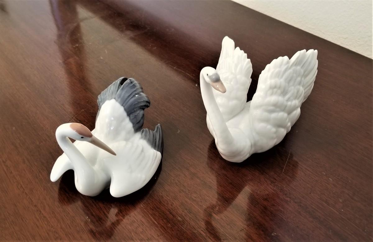 Two LLADRO figurines - no boxes - Swan is 4.5" long, Heron is 4" long. Both in good condition.