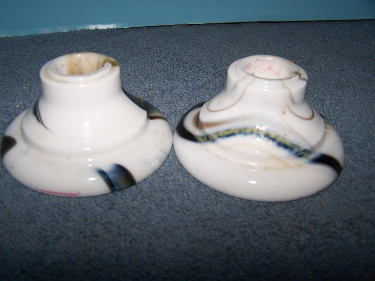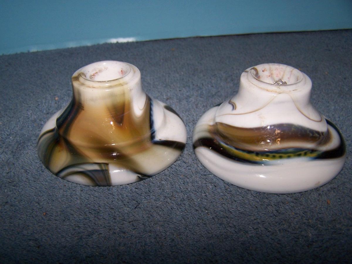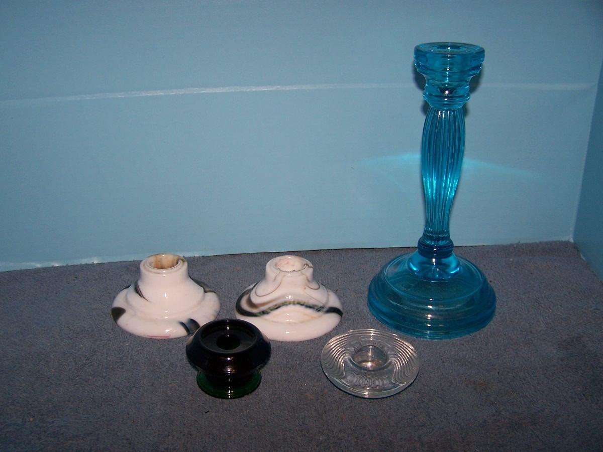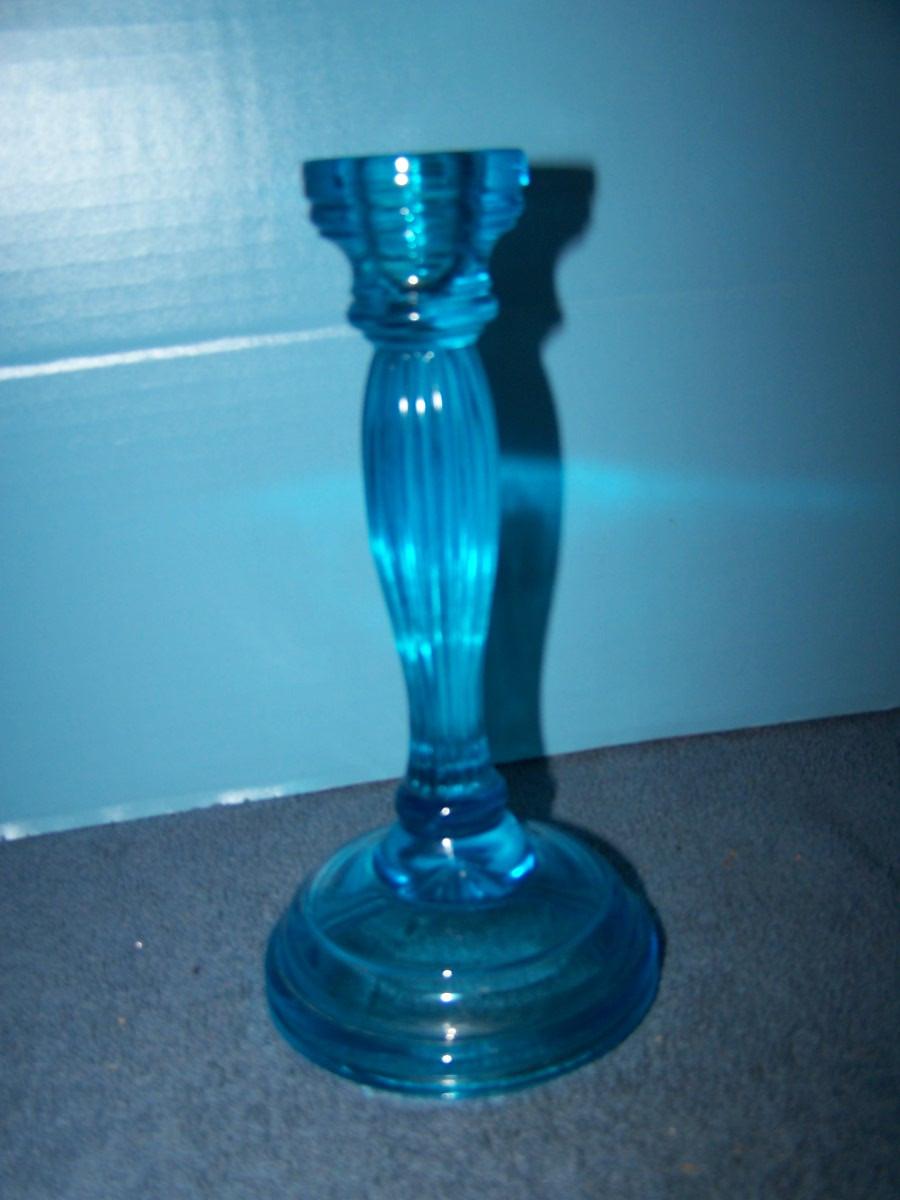 THESE ARE UNIQUE VINTAGE MCM GLASS CANDLESTICKS!!! UNMARKED.. TEAL IS 8 1/4'' TALL... LIGHT WEAR, SOME WAX RESIDUE...