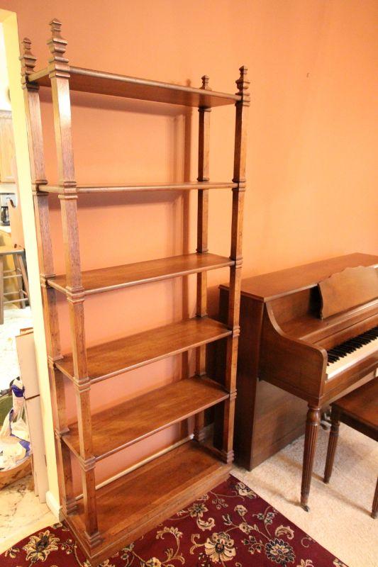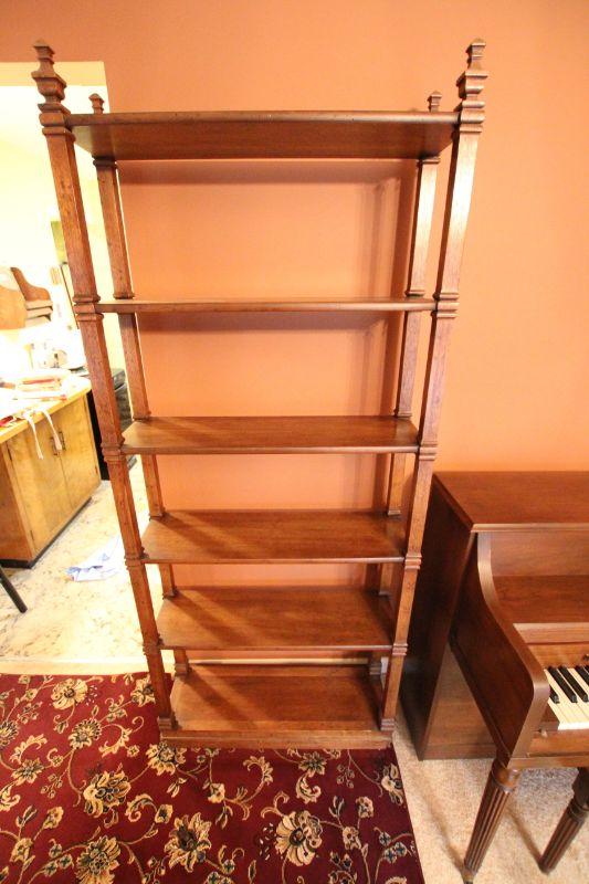 76" h x 32"w x 11" d standing wood case with no light. Surface scratches. Stable no wobbles.