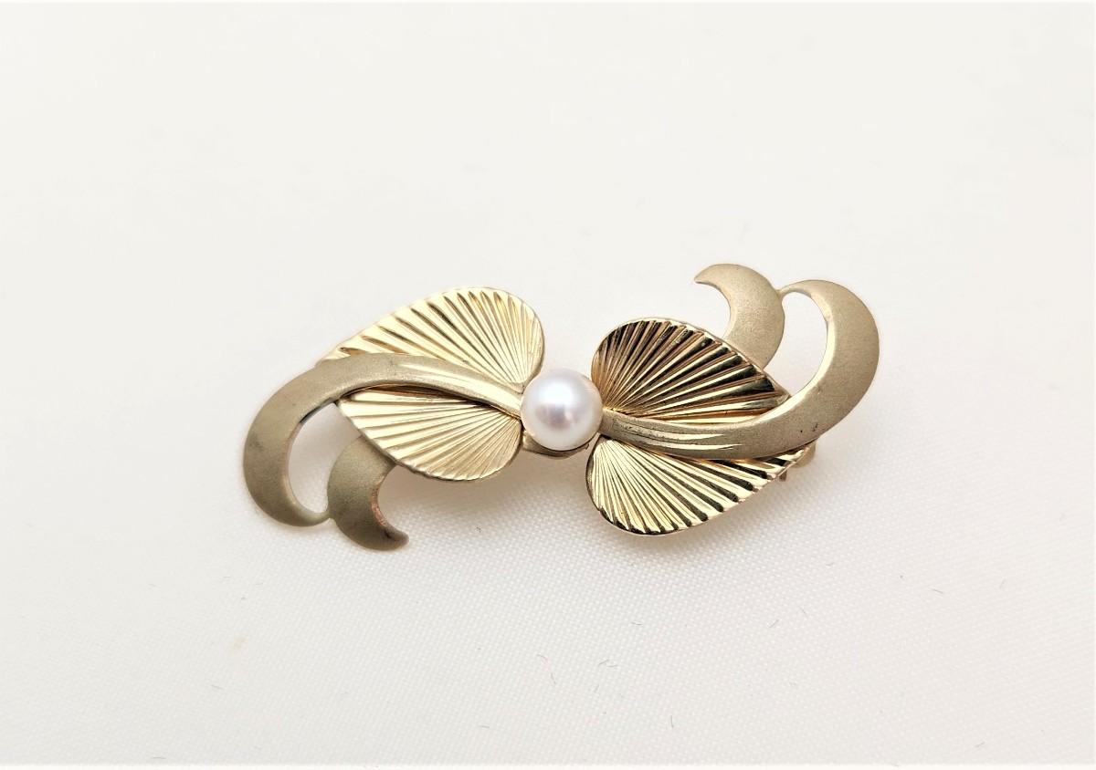 Lot #128D 14kt Gold Brooch with Cultured Pearl