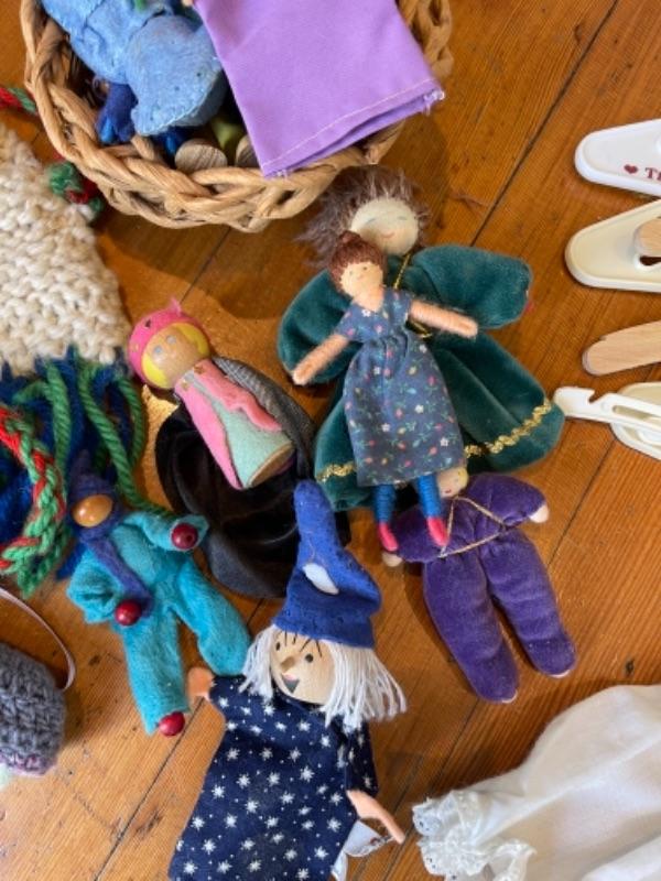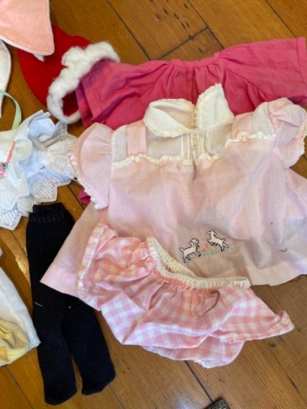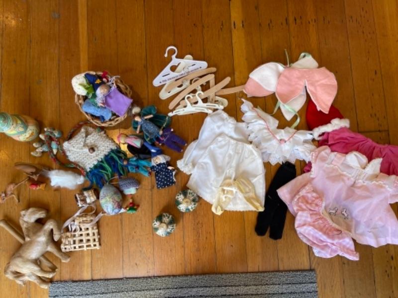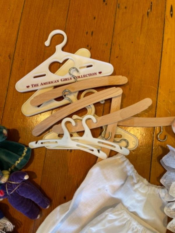 Lot 128K. Dolls, doll clothes and hangers, kids toys--$35