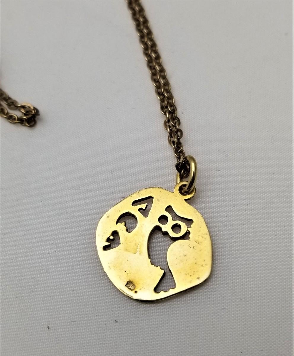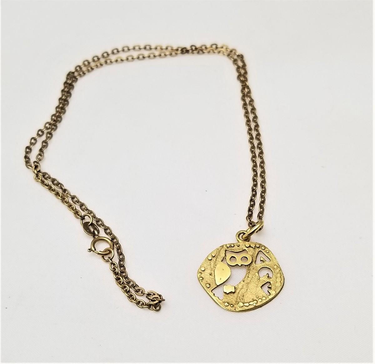 Marked and tested 18kt yellow gold - whimsical owl pendent with chain. Chain is 18" long, pendant is just under 1", not counting the bail. Minimum bid is about 10% above the scrap price.