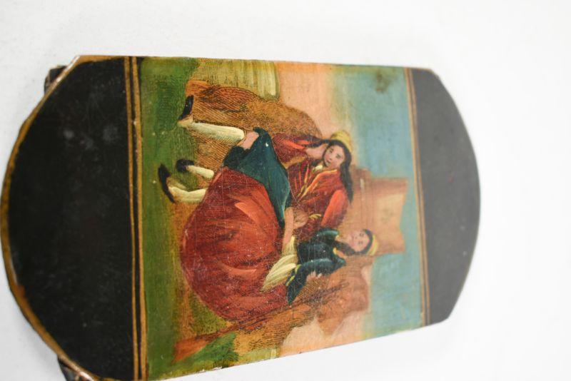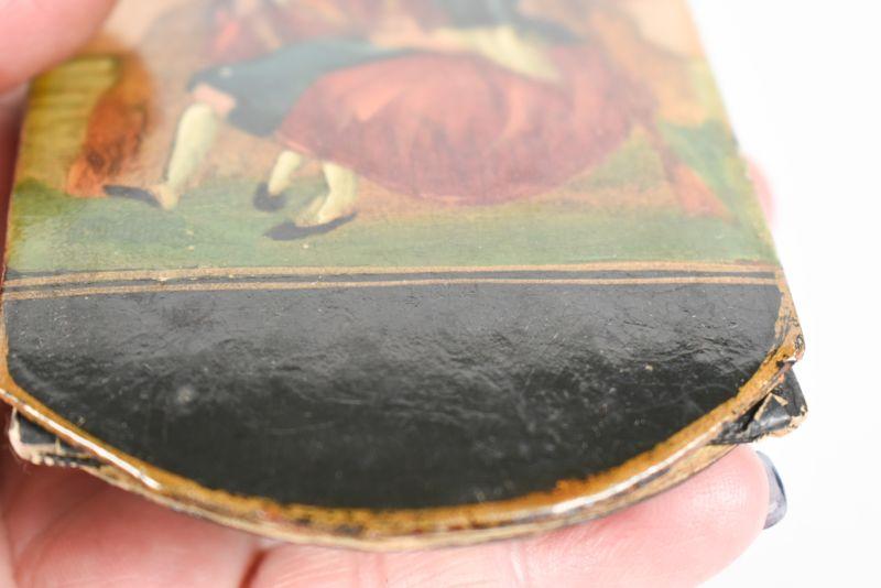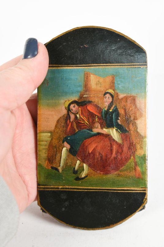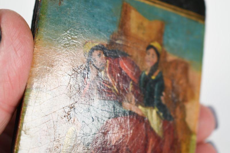 Not positive what this is, possibly a wallet of some sort, but it has beautiful artwork on it. Lots of crackle in the glaze. **Please read Terms and Conditions before placing a bid. Pick up is Sunday, December 22 from 11am to 3pm or Monday, December 23 from 4pm-7pm in Mantua, NJ. All sales are final. All sales are as is, where is. Please review all photos. Props are not included. Measurements are approximate.