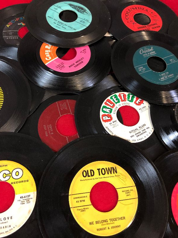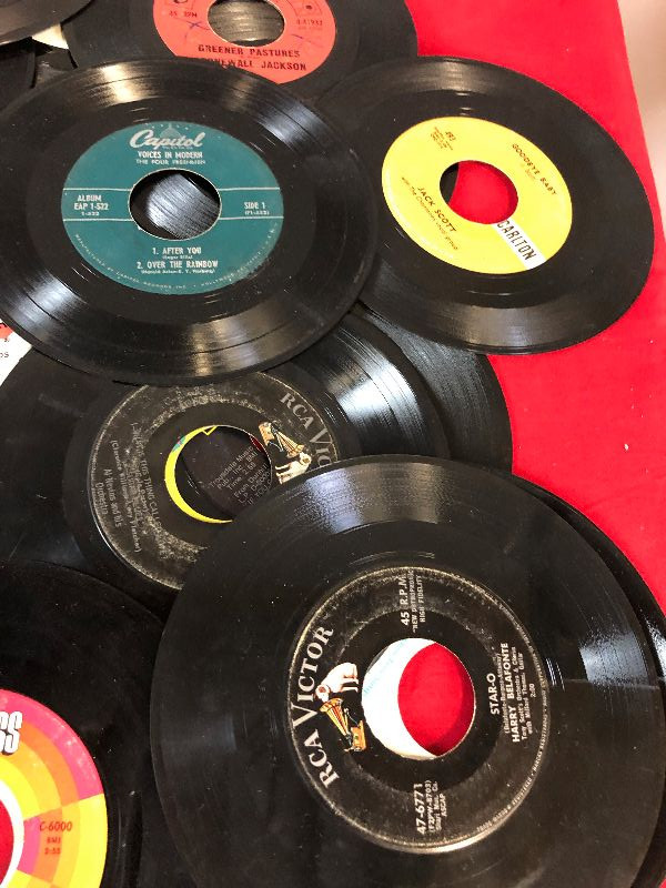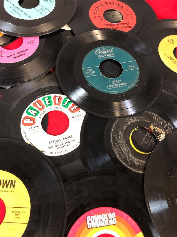 Lot 129 45 Records; Rock, jazz, blue - no covers! 24 - all have scratches