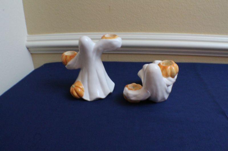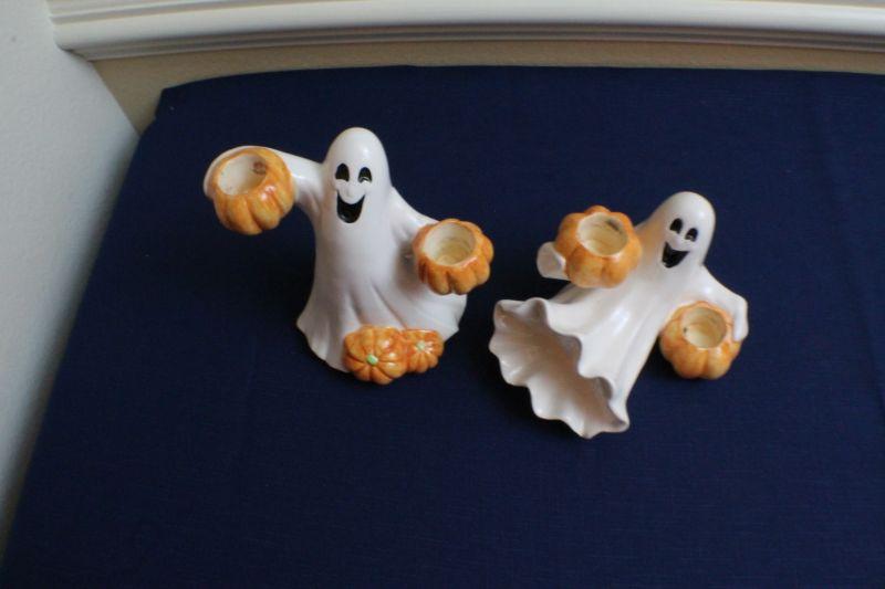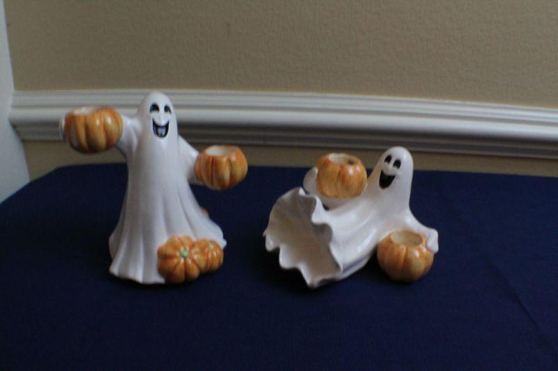 LOT #129: (2) Small Fitz and Floydâ„¢ Halloween Laughing Ghosts w/ Pumpkins