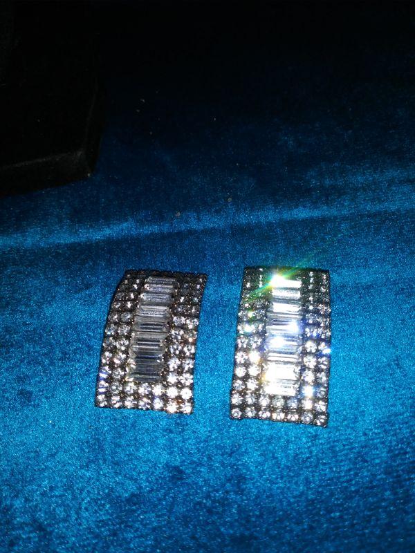 CLIP ON ARCHED EARRINGS WITH FACETED AND RHINESTONES