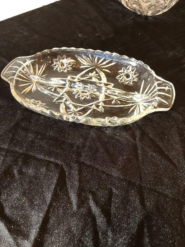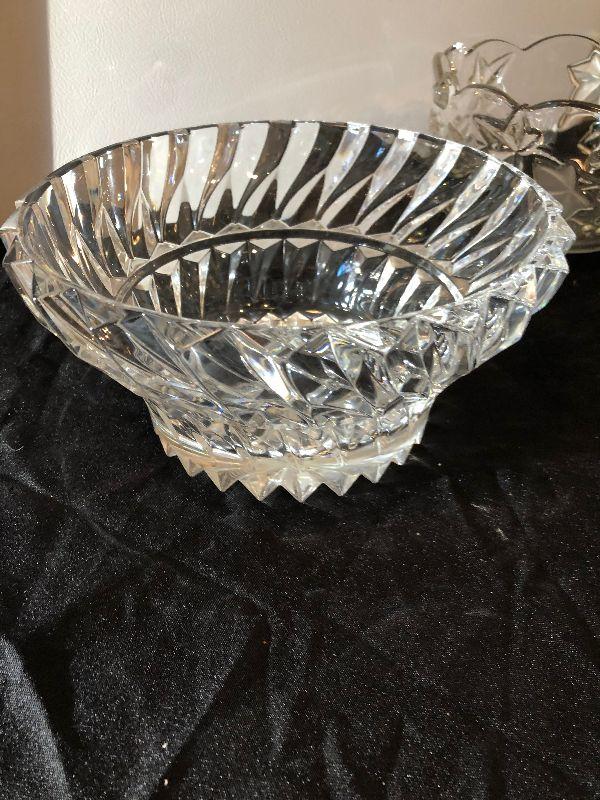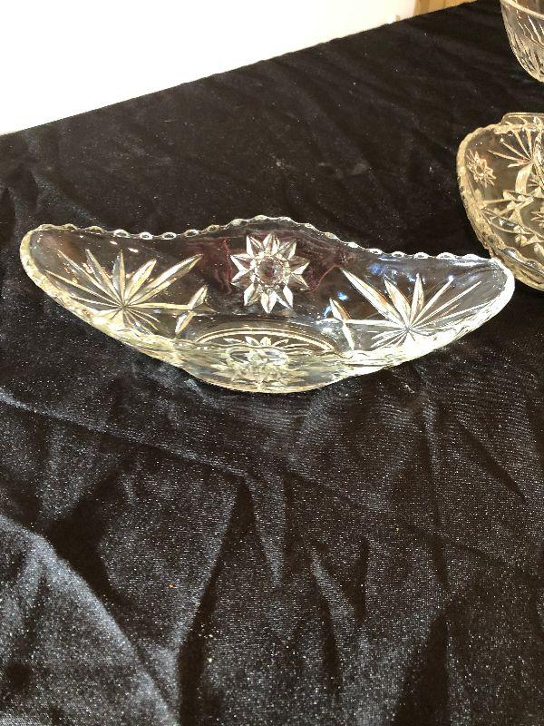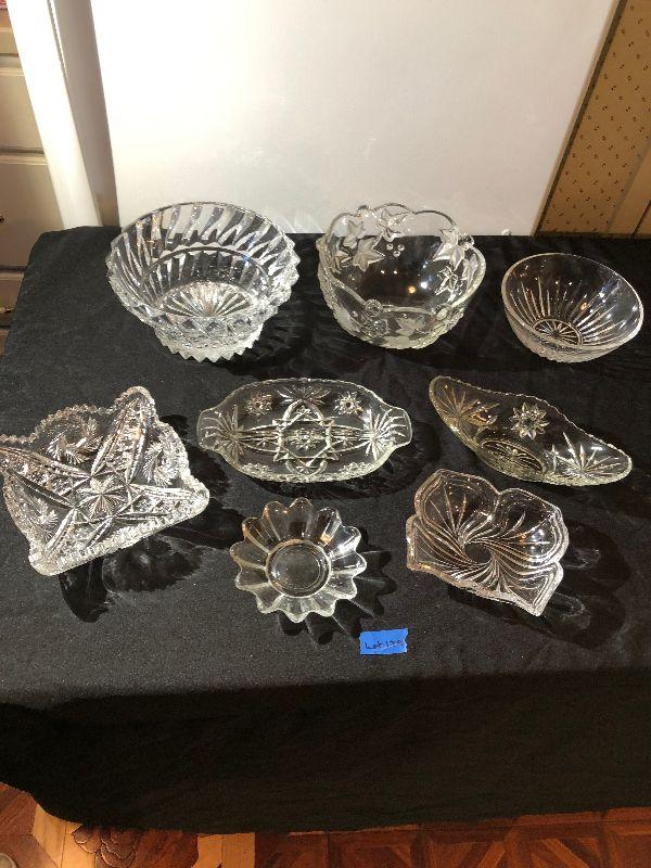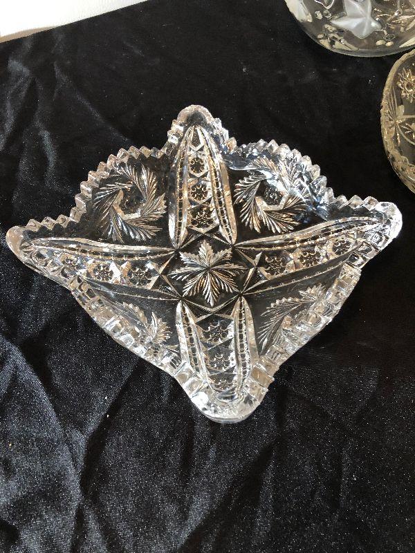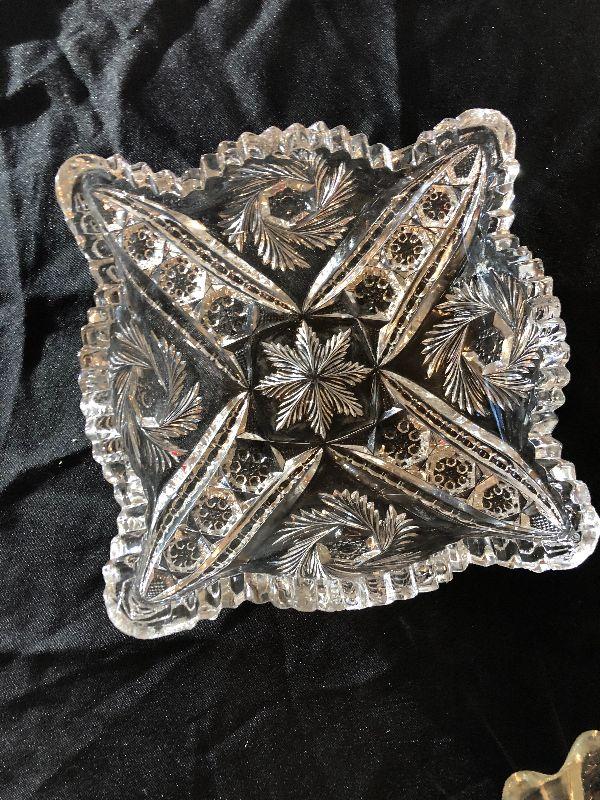 Assortment of Crystal and Glass Pieces (Some Vintage) including an American Brilliant Square Bowl, Heavy Lead Crystal Bowl and Other Fine Decorative Serving Pieces..