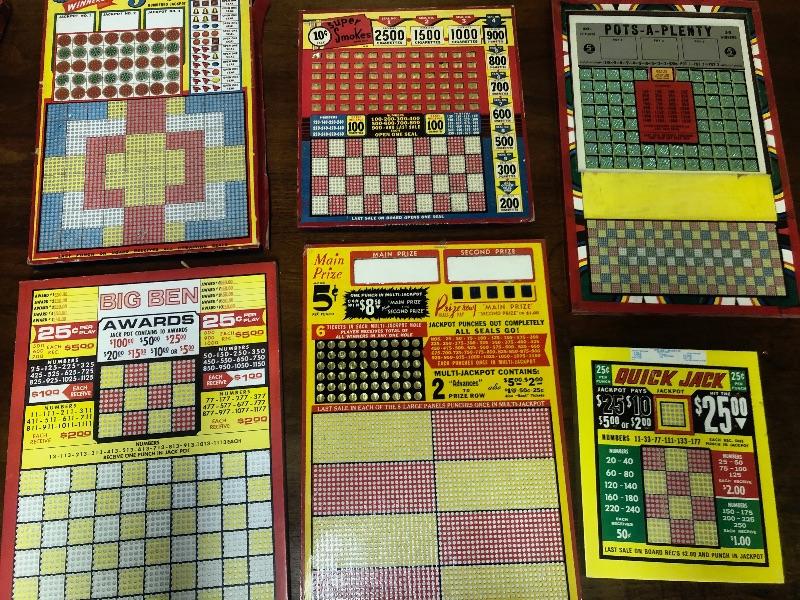 6 boards: Quick Jack, super smokes, three prize winner, pots-o-plenty, big Ben, main prize_: Vintage used condition