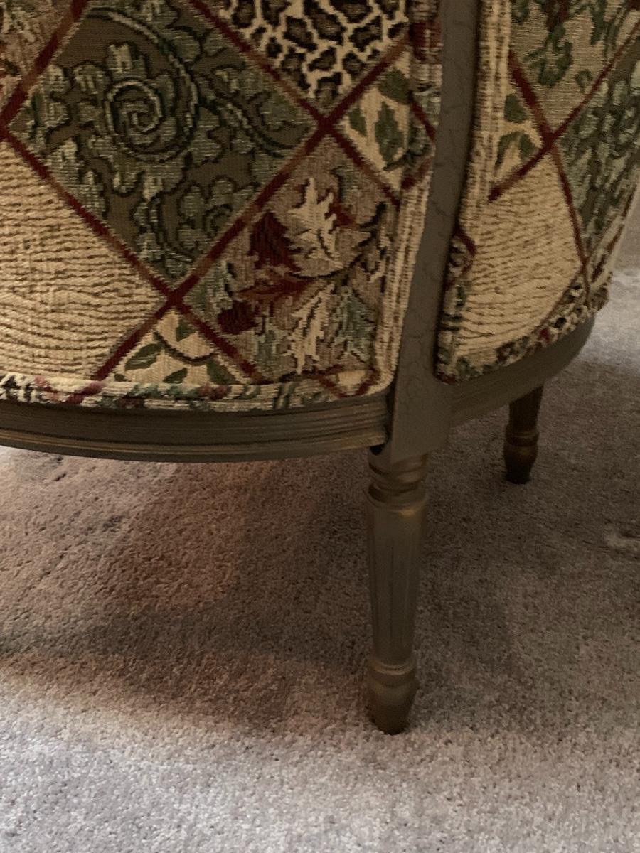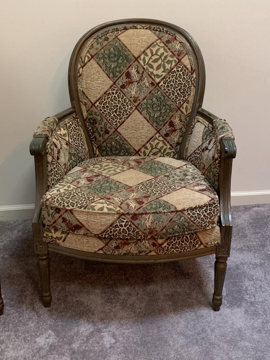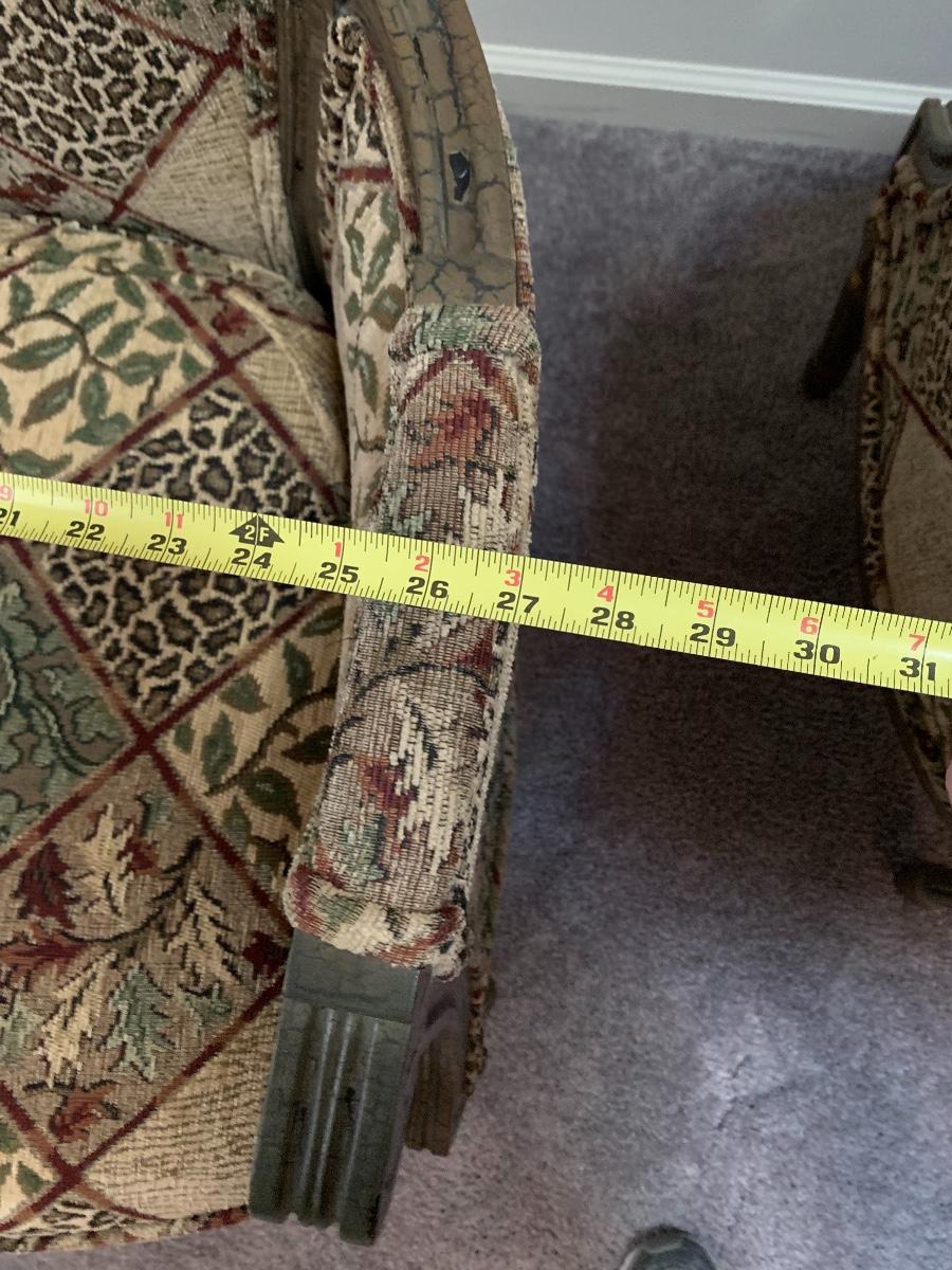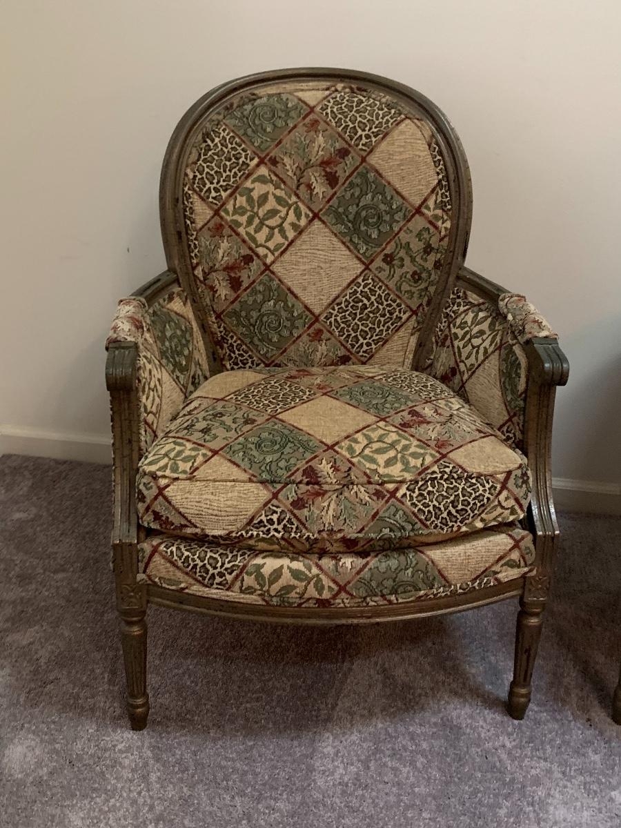 Beautiful pair of chairs. Cushion of one chairs is not as full as the other. Someone most likely sat in one more than the other.