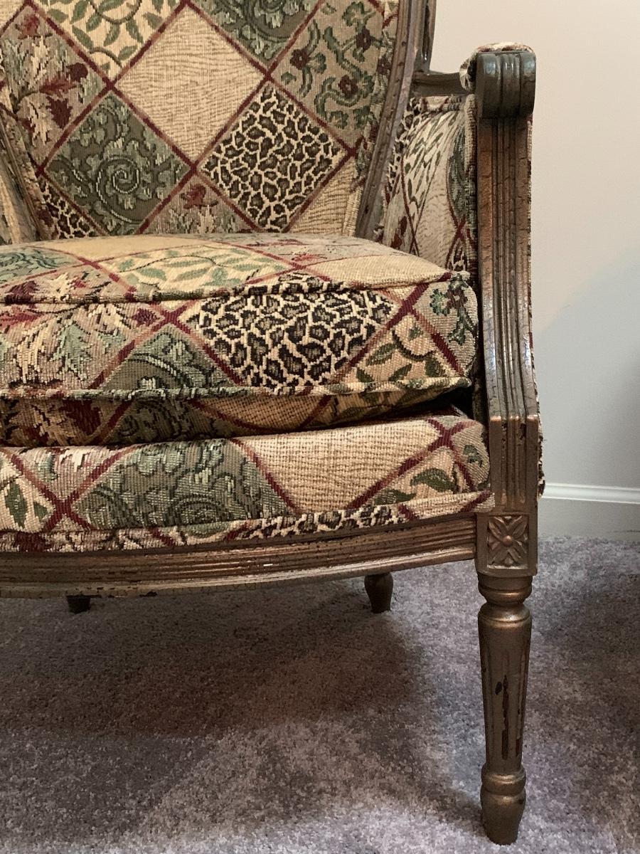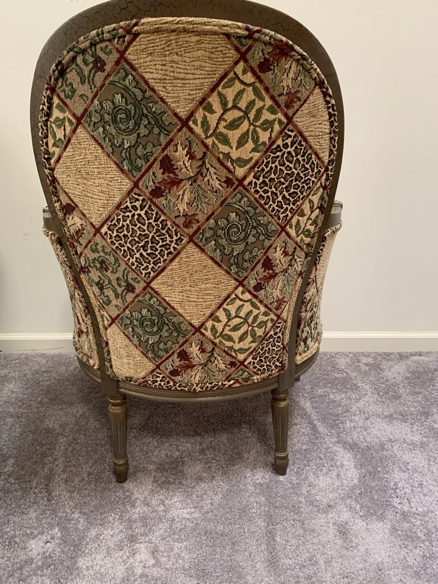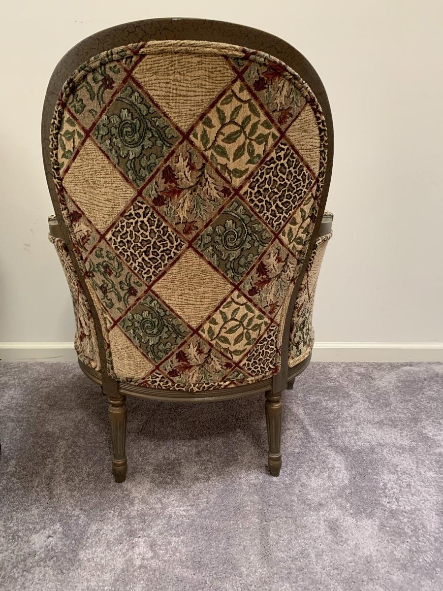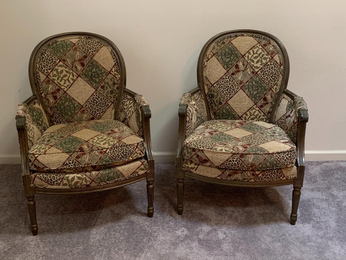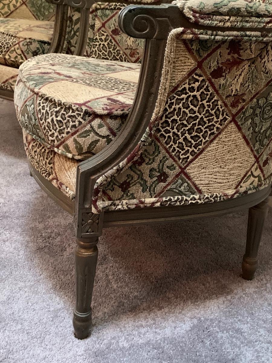 Beautiful pair of chairs. Cushion of one chairs is not as full as the other. Someone most likely sat in one more than the other.