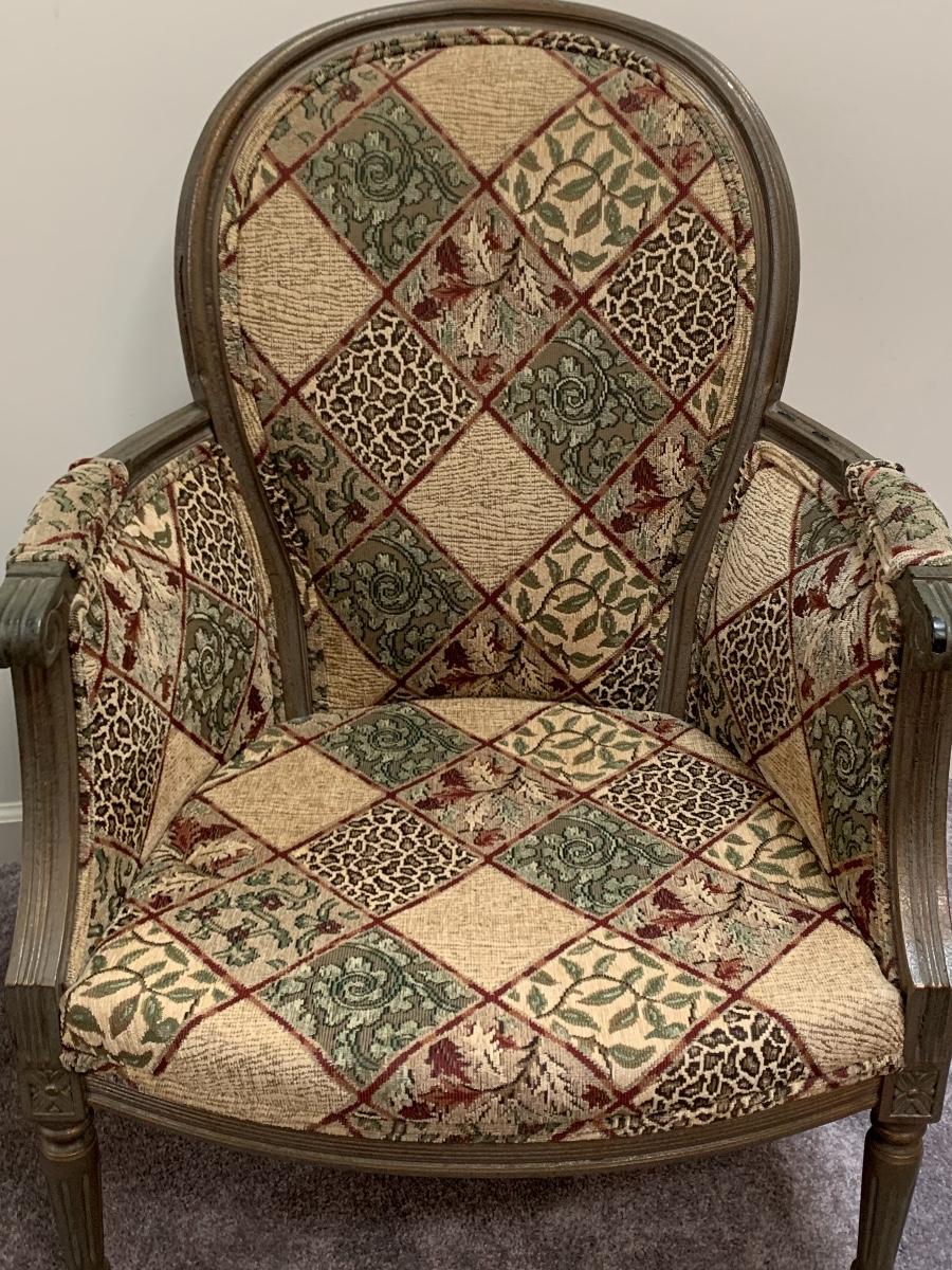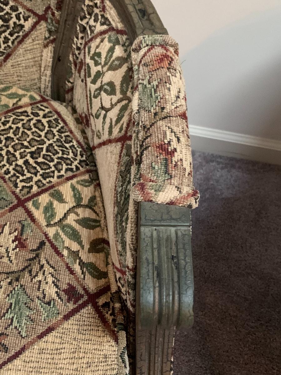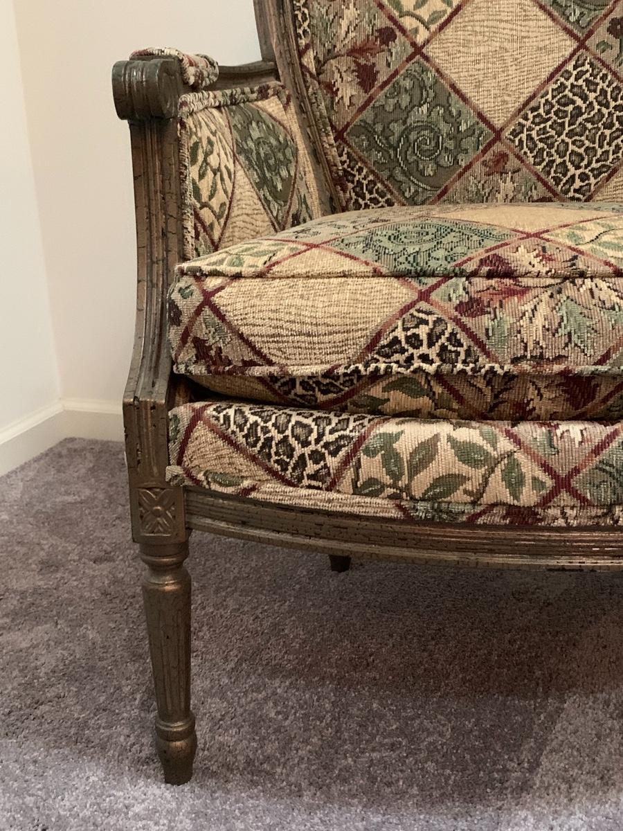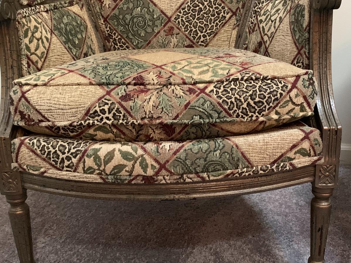 Beautiful pair of chairs. Cushion of one chairs is not as full as the other. Someone most likely sat in one more than the other.