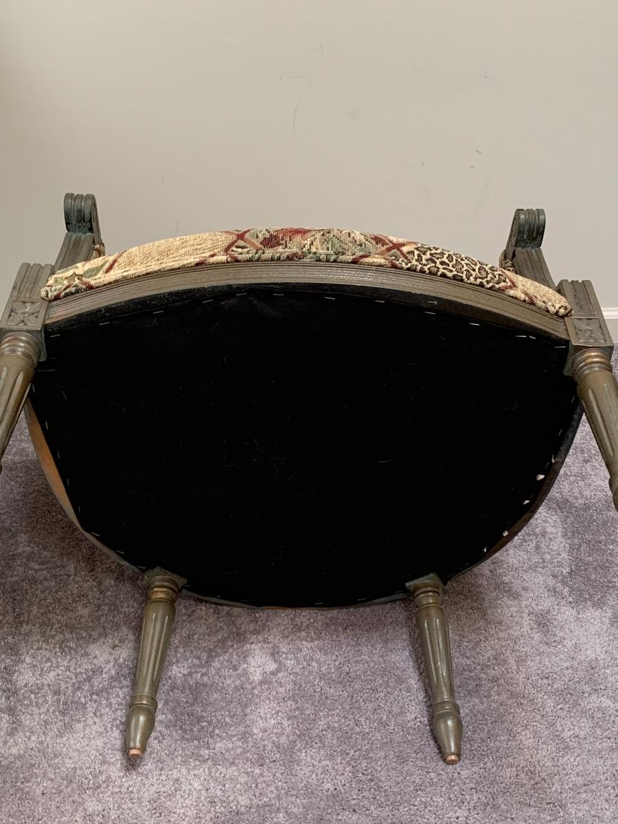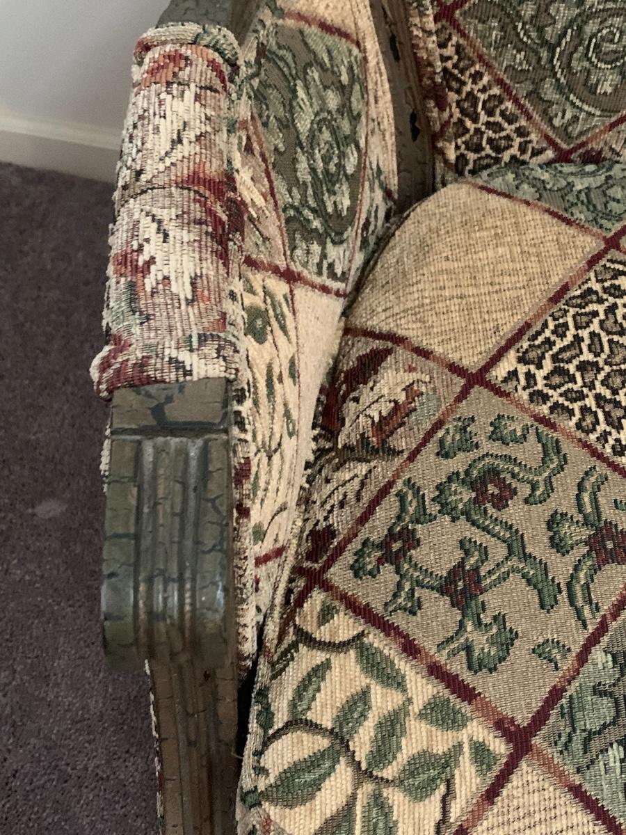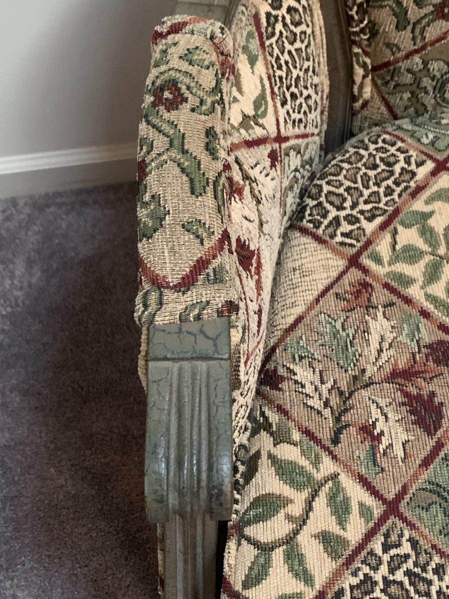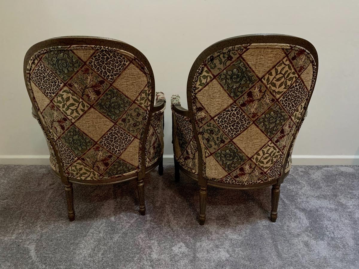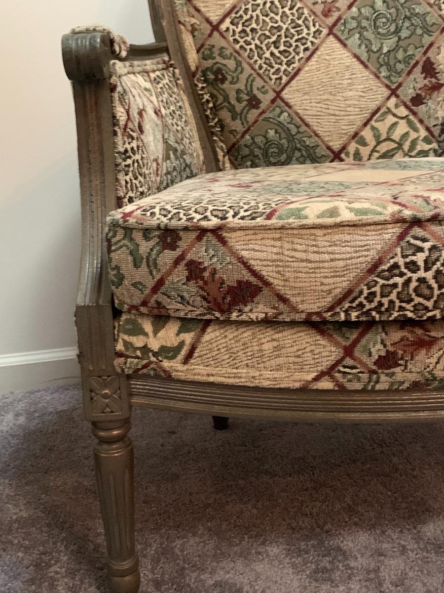 Beautiful pair of chairs. Cushion of one chairs is not as full as the other. Someone most likely sat in one more than the other.