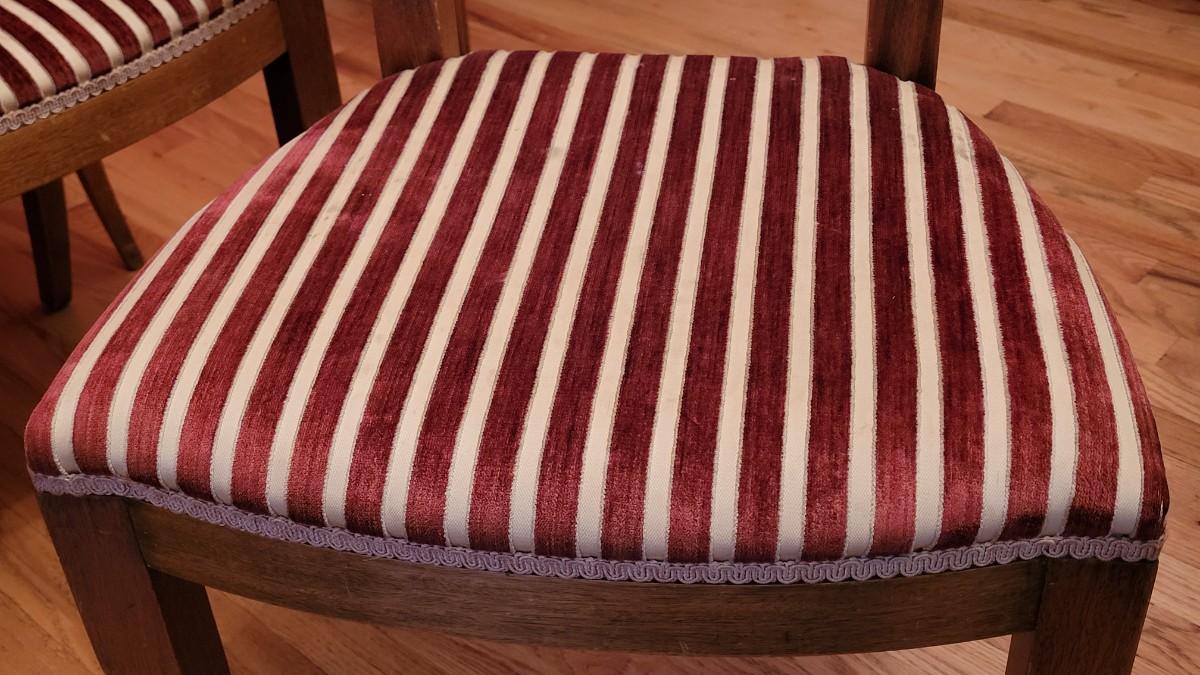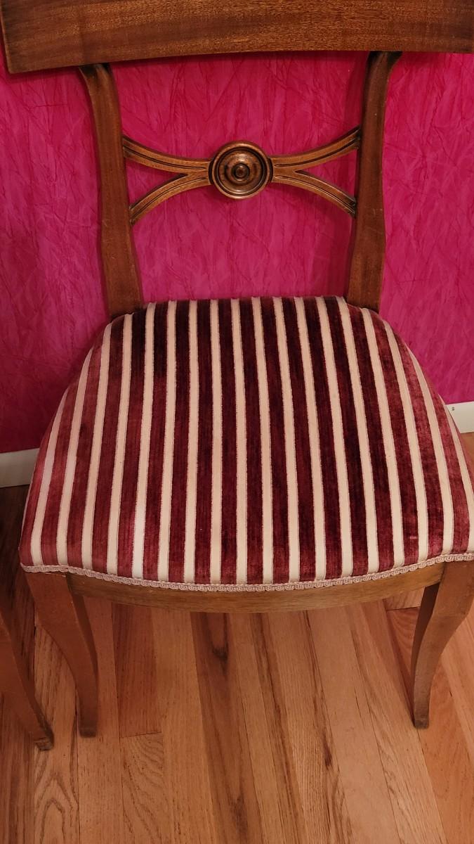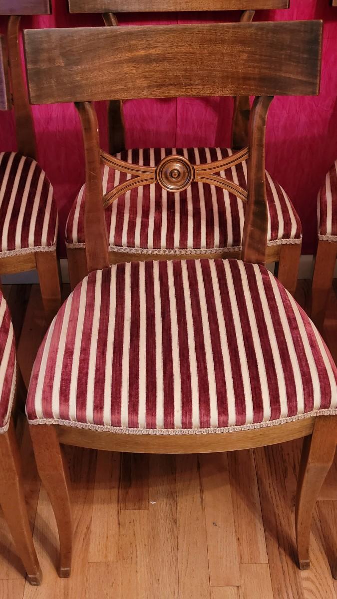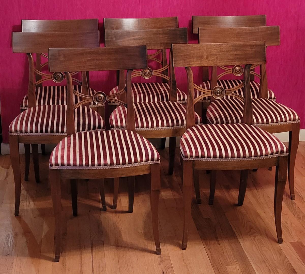 Lot 129: (8) Kittinger Dining Chairs with Velvet Stripe Seats
