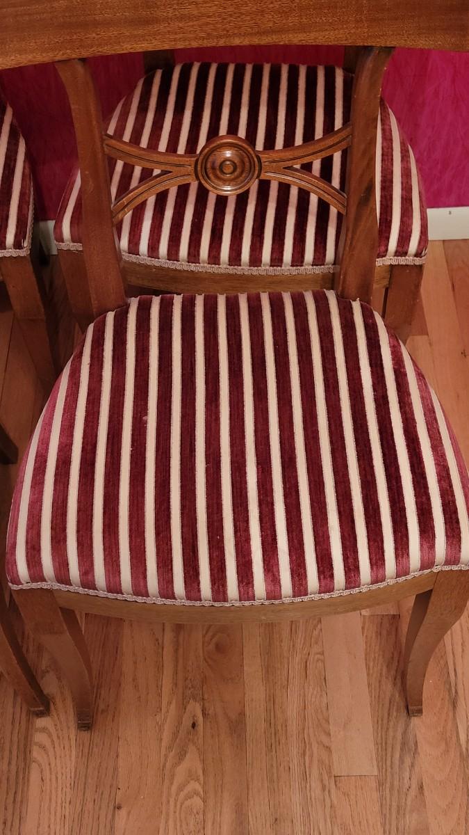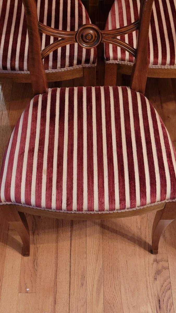 Nice condition. These chairs have held up great and were passed down in the family. They were originally Barbara Leyendecker's parent's chairs.