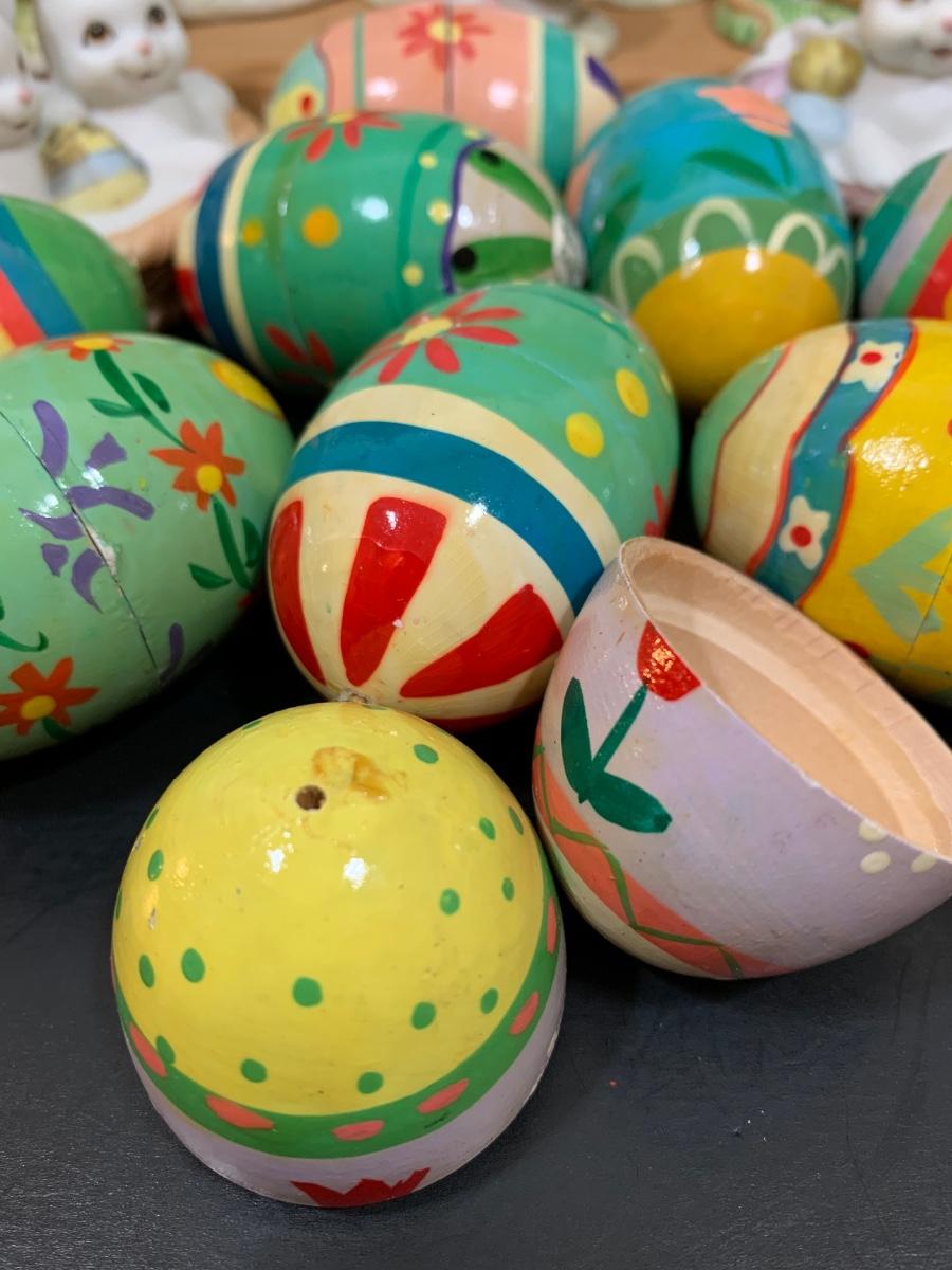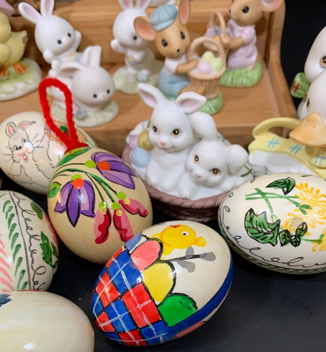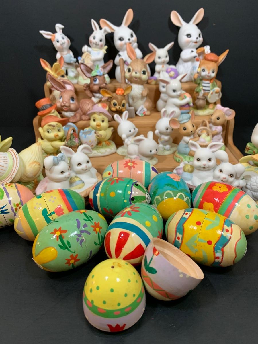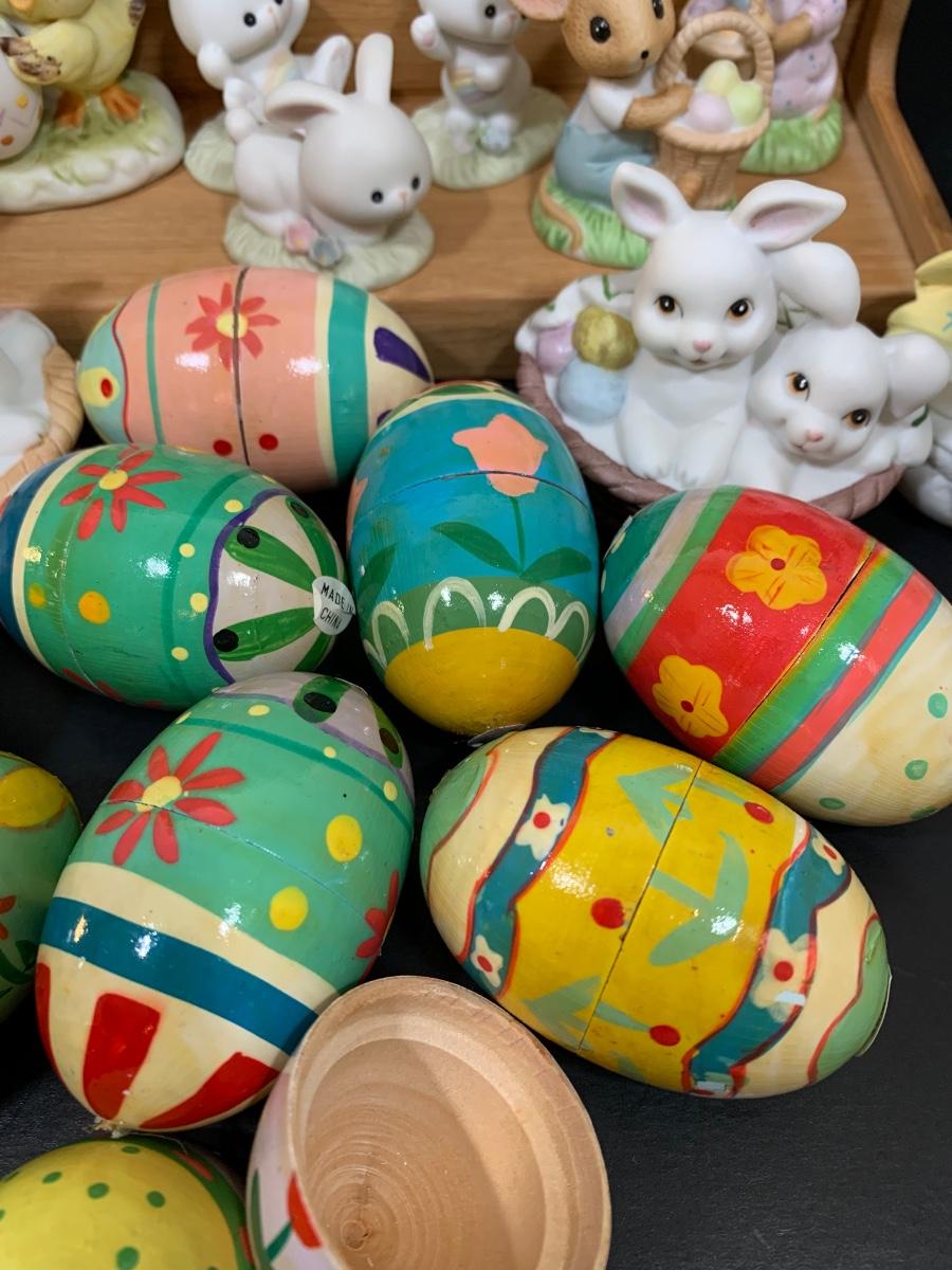 Lot 129: Lefton, Enesco, Hand Painted Eggs, Wooden Eggs & More