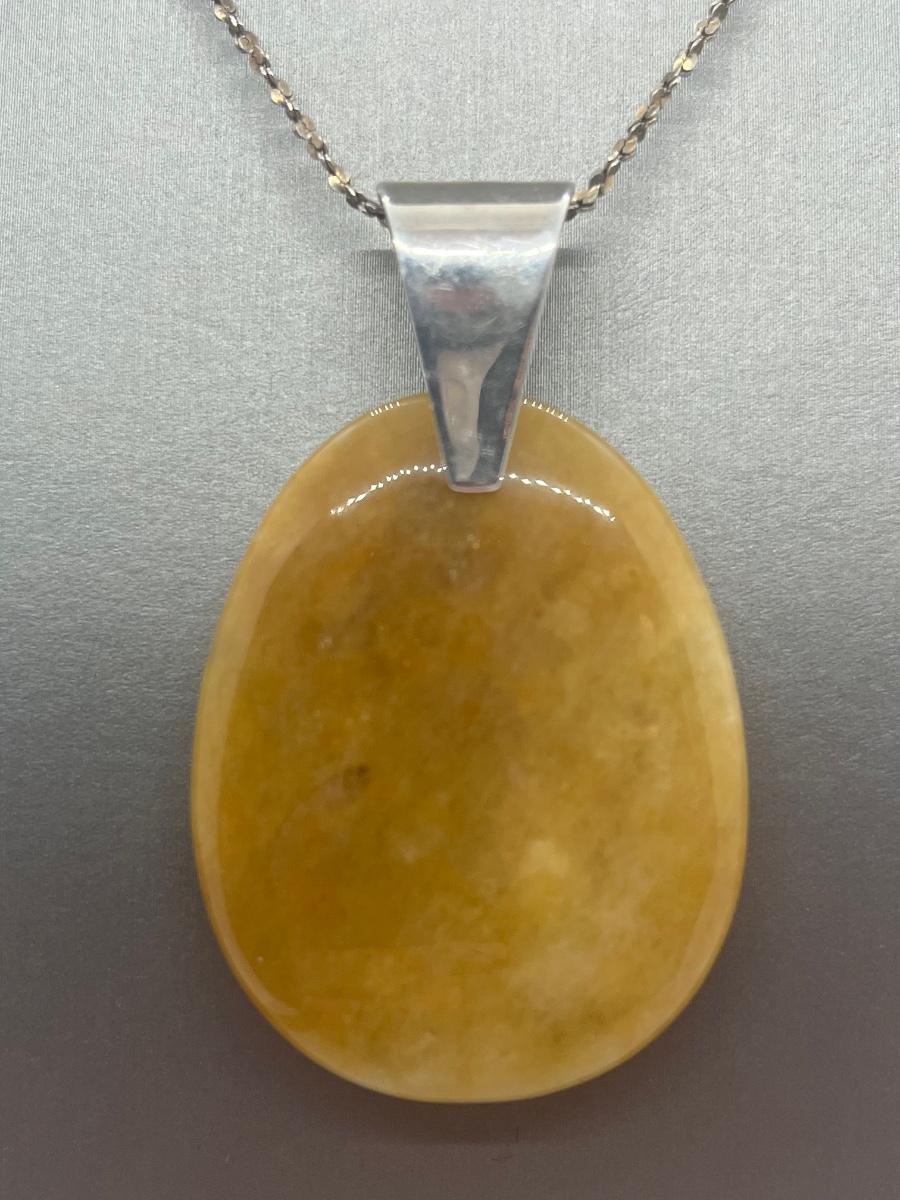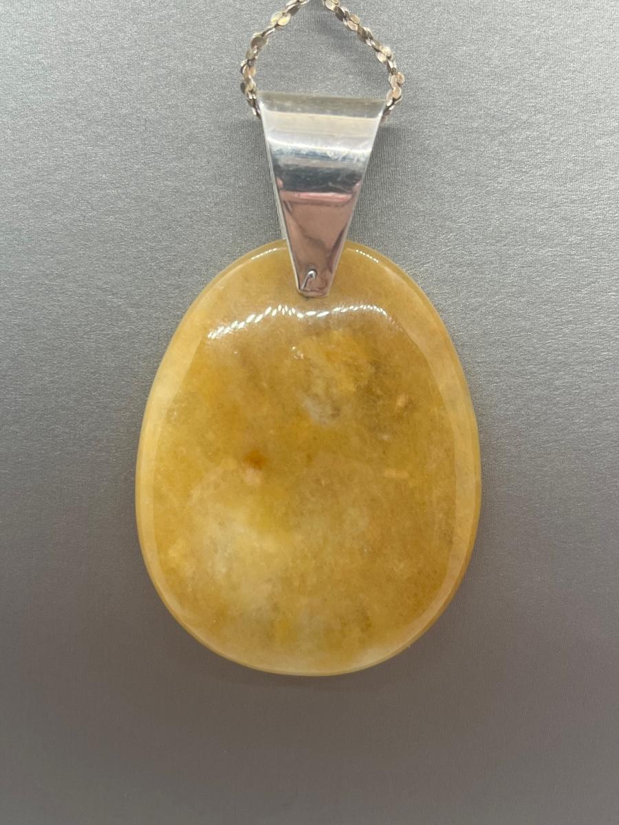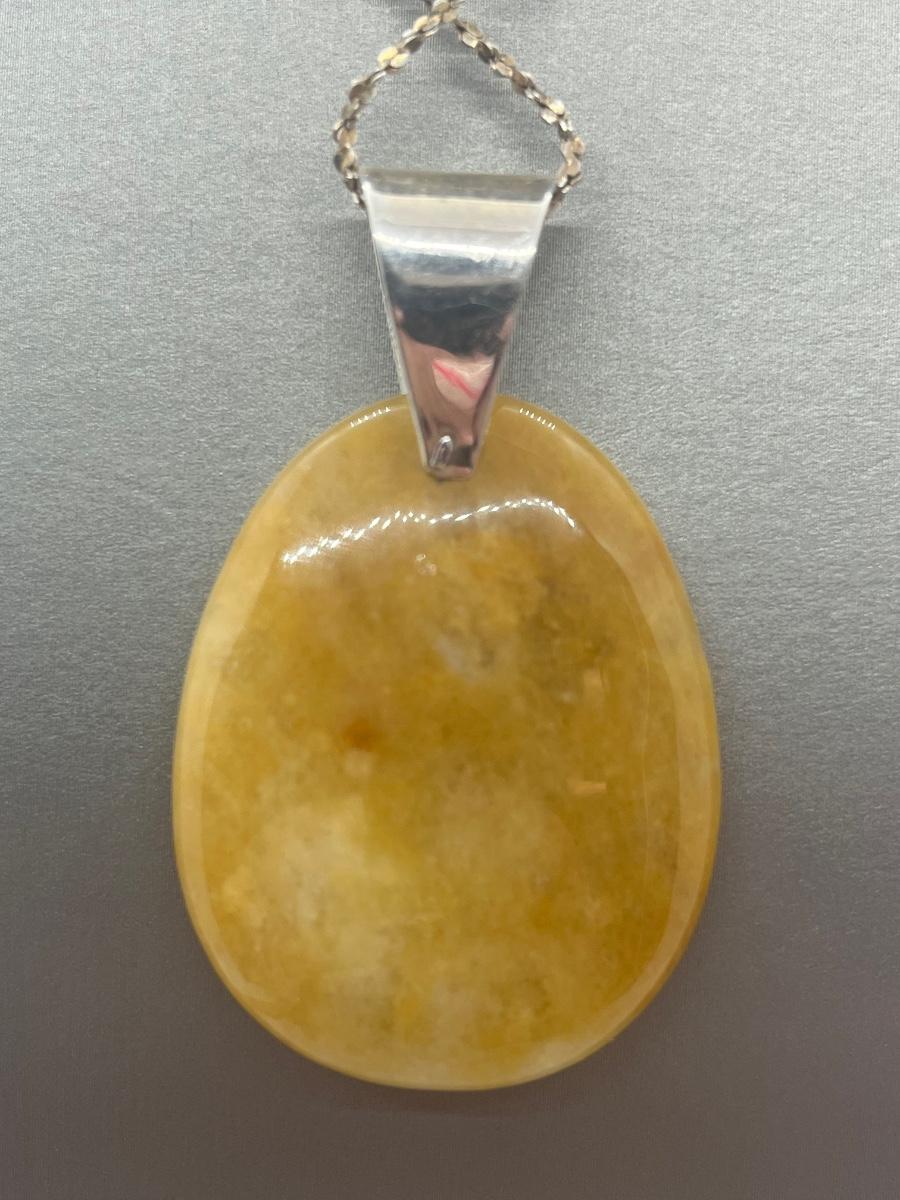 Butterscotch jasper pendant by Jay King- Desert rose trading company. A healing stone to protect you from worry and illness. It's a really beautiful stone! Chain not included. The pictures show condition, measurements if taken, and what is included in the lot. Due to the large amount that we photograph and the time frame, we are not always able to take measurements. All items unless noted, are pre-owned and have been used, and are untested. Thank you