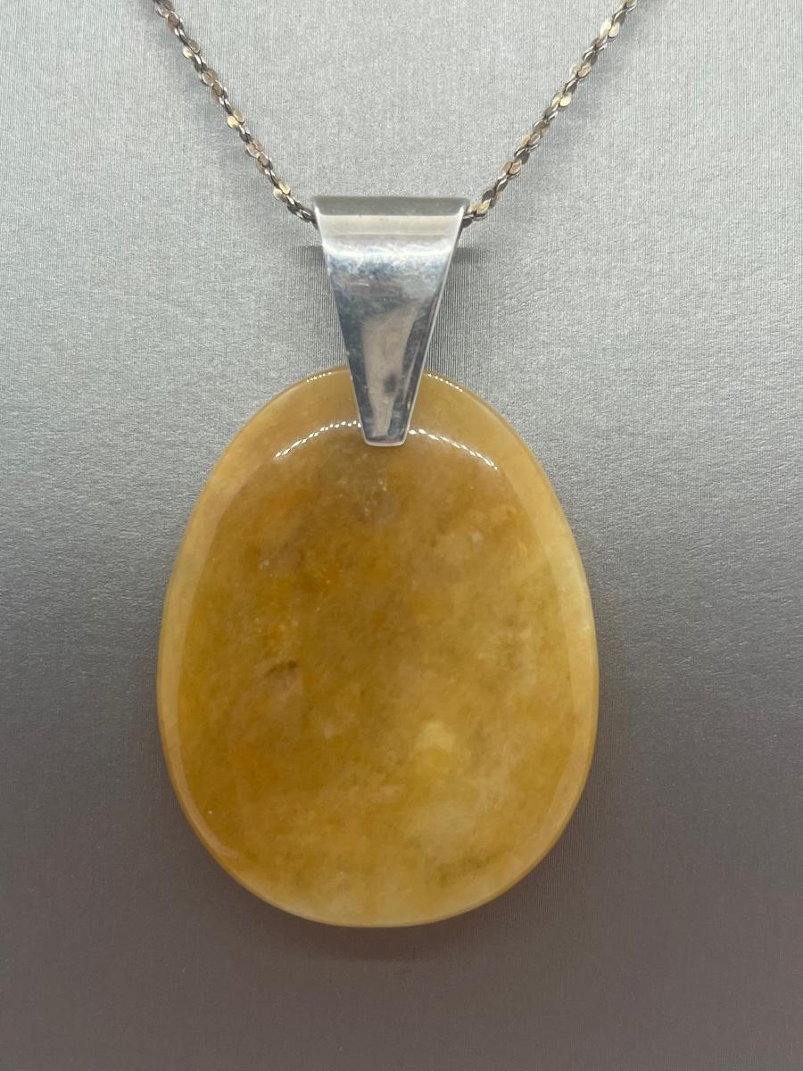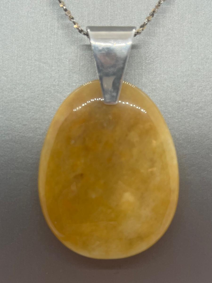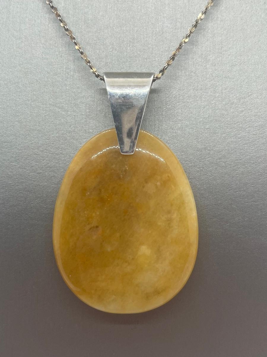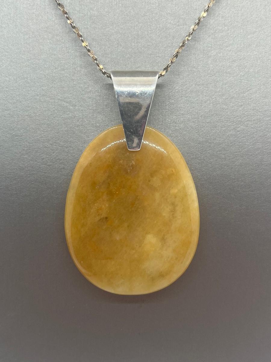 Butterscotch jasper pendant by Jay King- Desert rose trading company. A healing stone to protect you from worry and illness. It's a really beautiful stone! Chain not included. The pictures show condition, measurements if taken, and what is included in the lot. Due to the large amount that we photograph and the time frame, we are not always able to take measurements. All items unless noted, are pre-owned and have been used, and are untested. Thank you