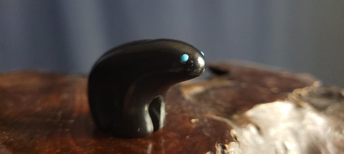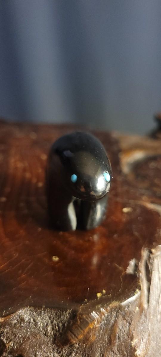 Lot 129: Vintage 1978 SIGNED Native American BEAR Fetish with TURQUOISE Eyes