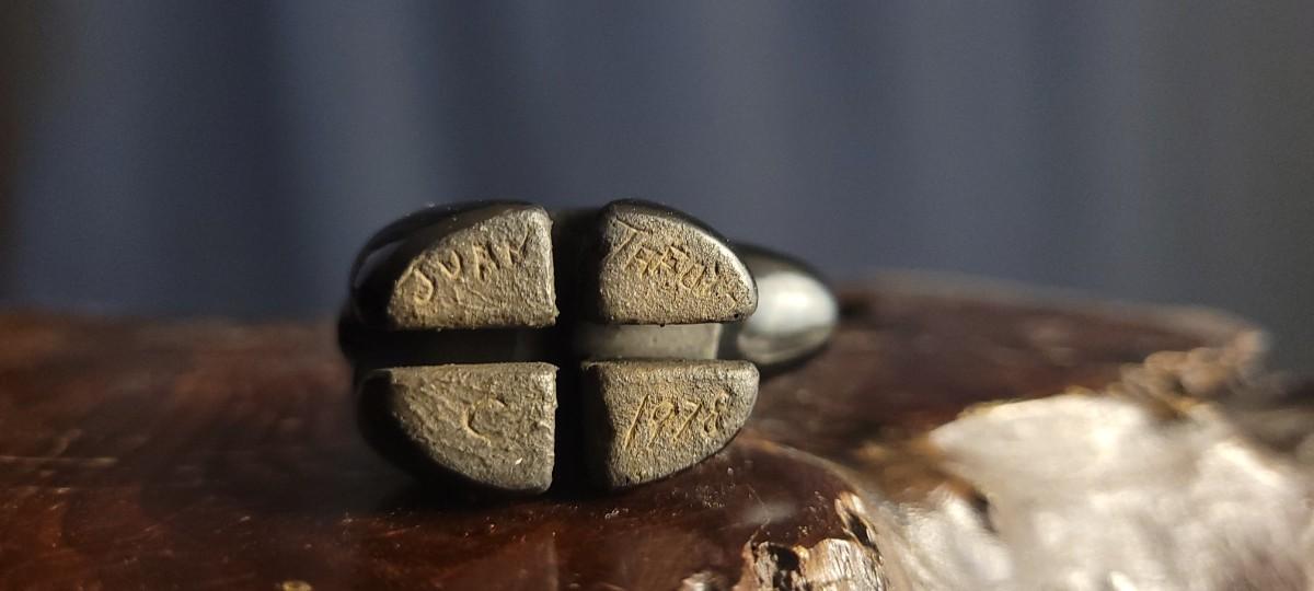 This daing little Bear Animal Effigy Carving is in great shape for age and shows both year and Artist on underside of feet.