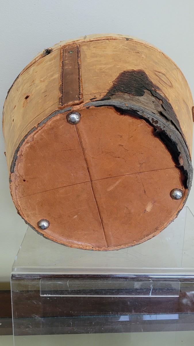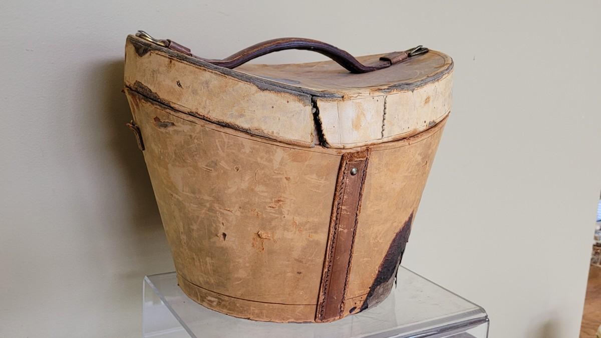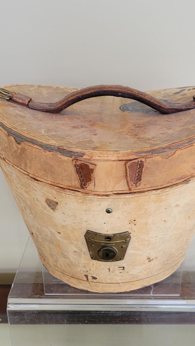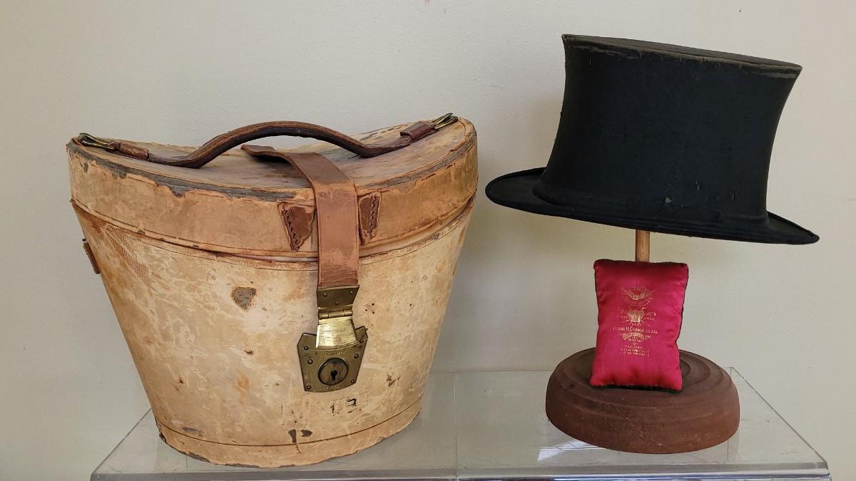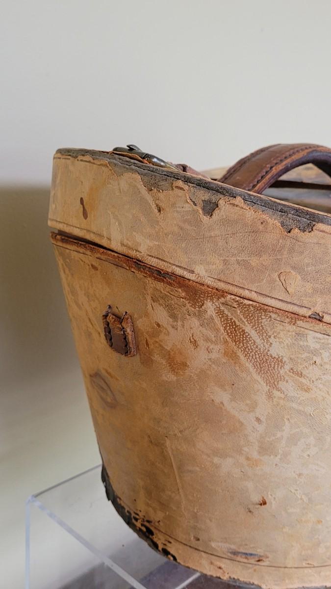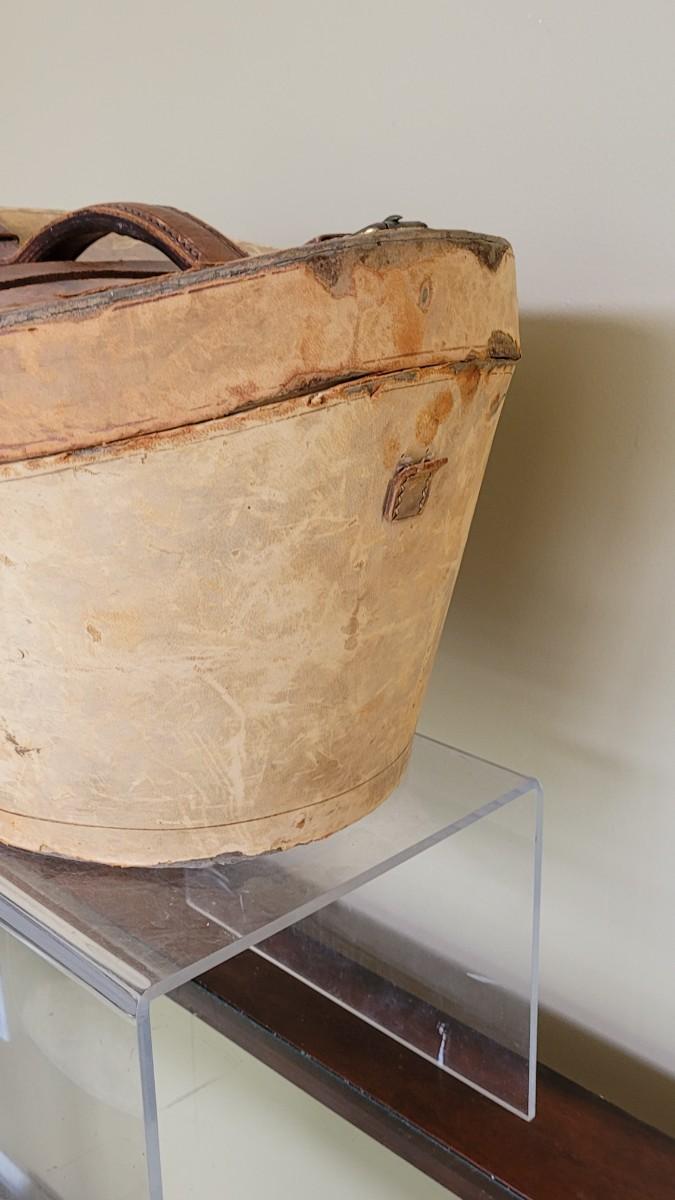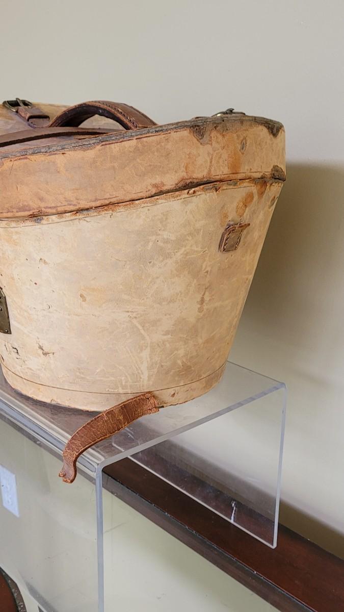 Lot 129: Antique Leather Top Hat Box with Collapsible FRANK H. CHAMBERLAIN Top Hat