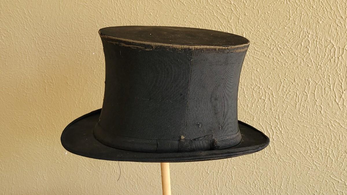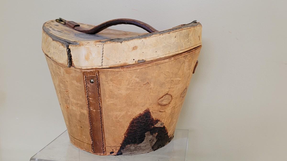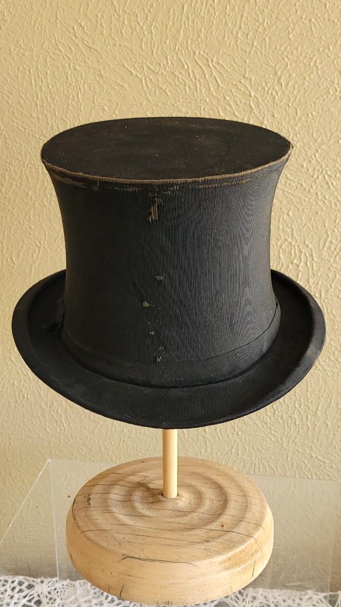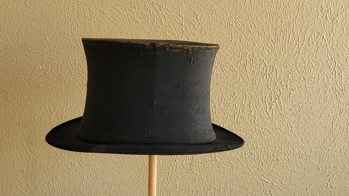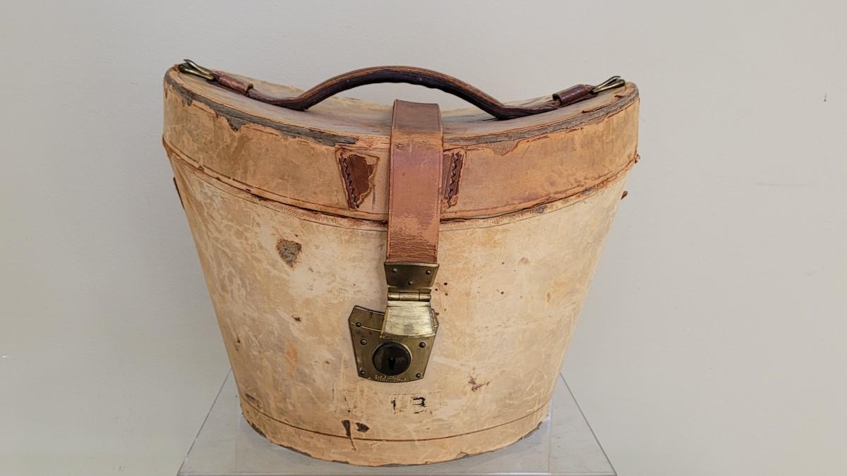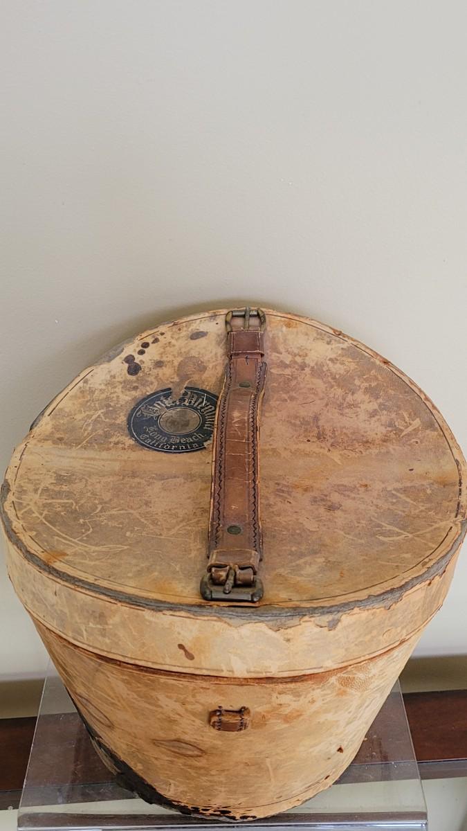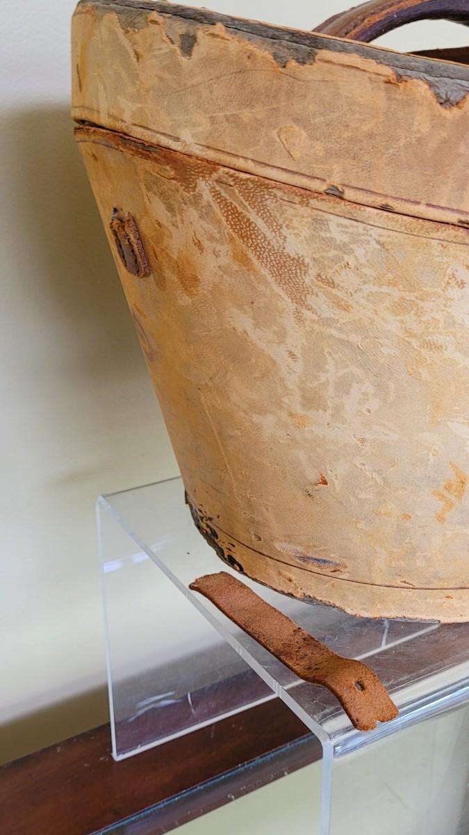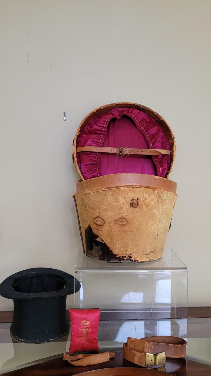 Lot 129: Antique Leather Top Hat Box with Collapsible FRANK H. CHAMBERLAIN Top Hat