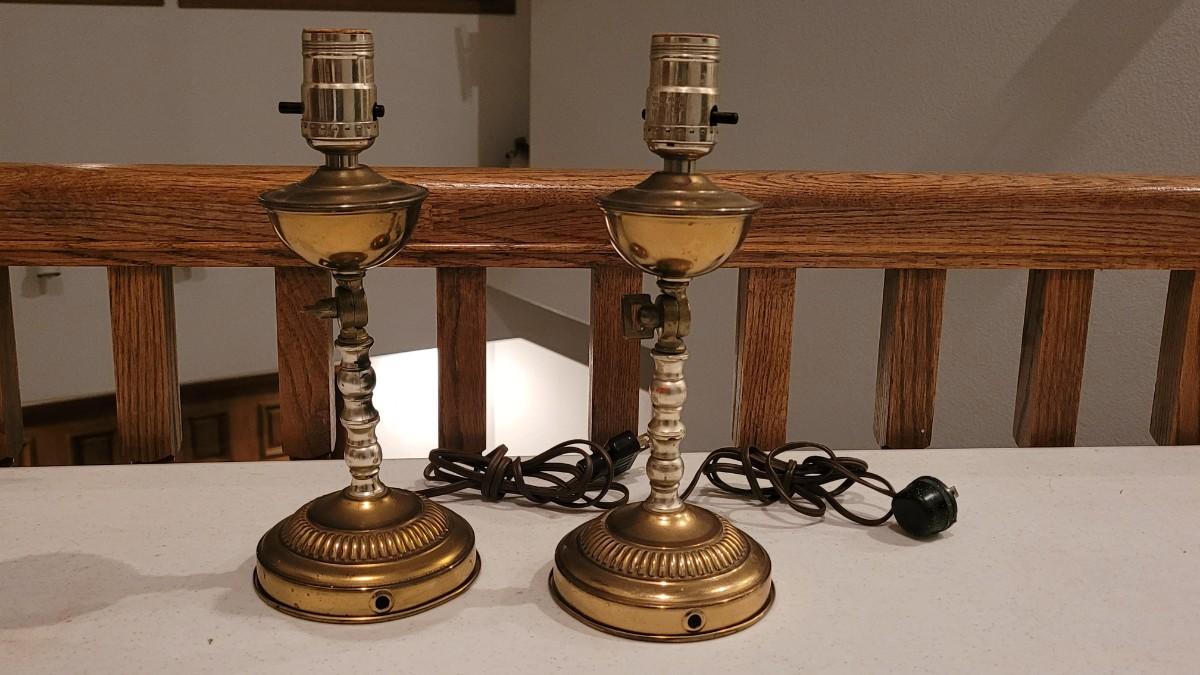 Lot 129: Pair of Vintage Brass & Silver Tone Small Lamps