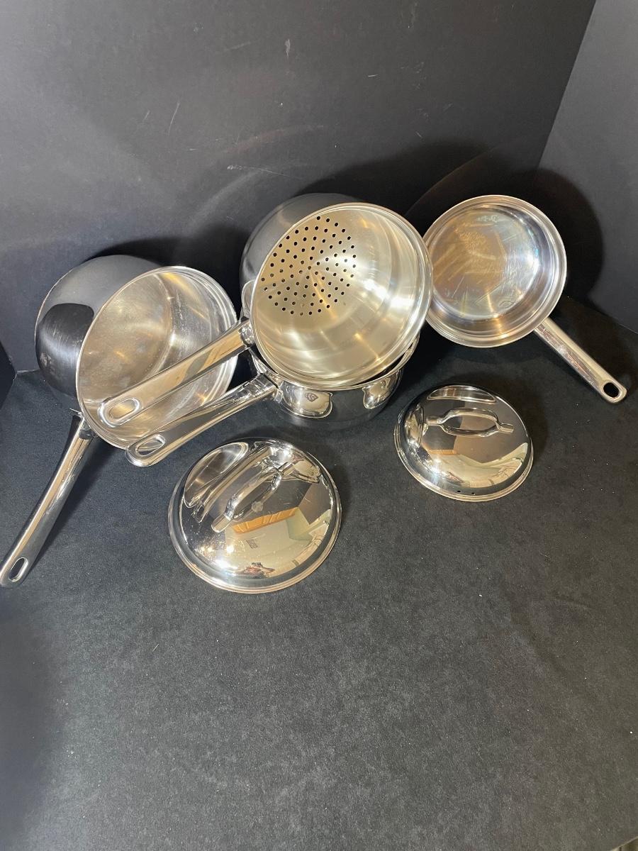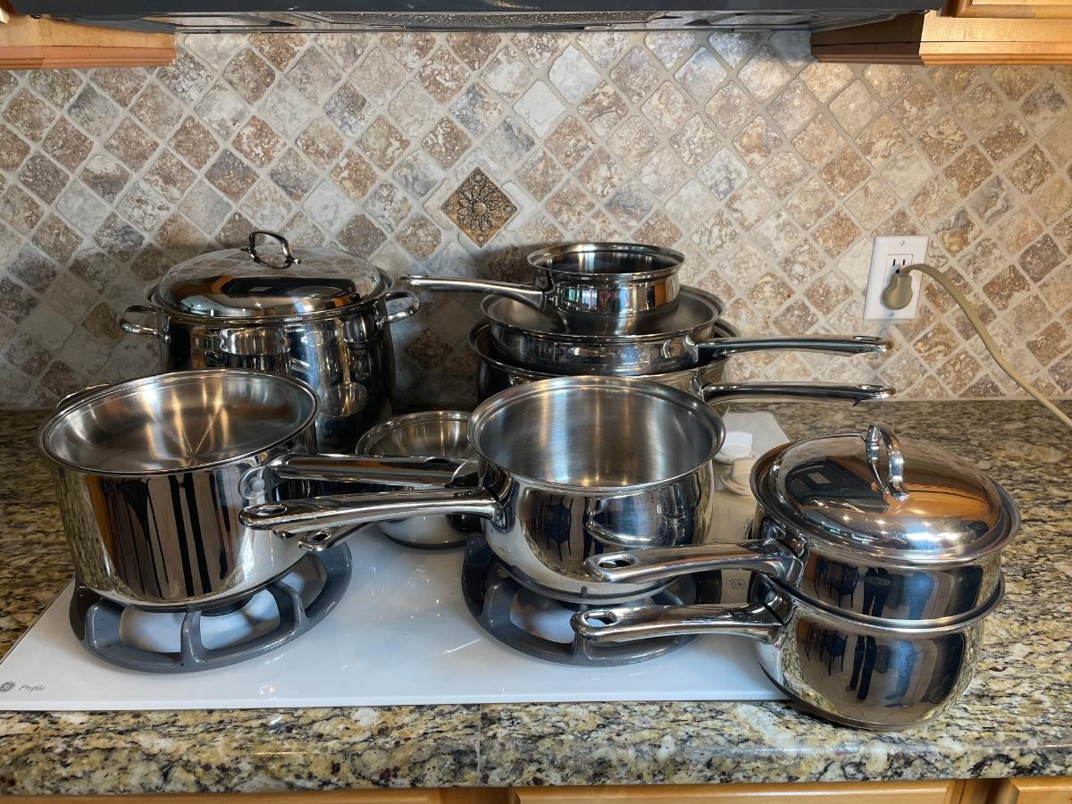 14-piece Belgique cookware set, made in Belgium. Also includes a 4qt. Wolfgang Puck saucepan.