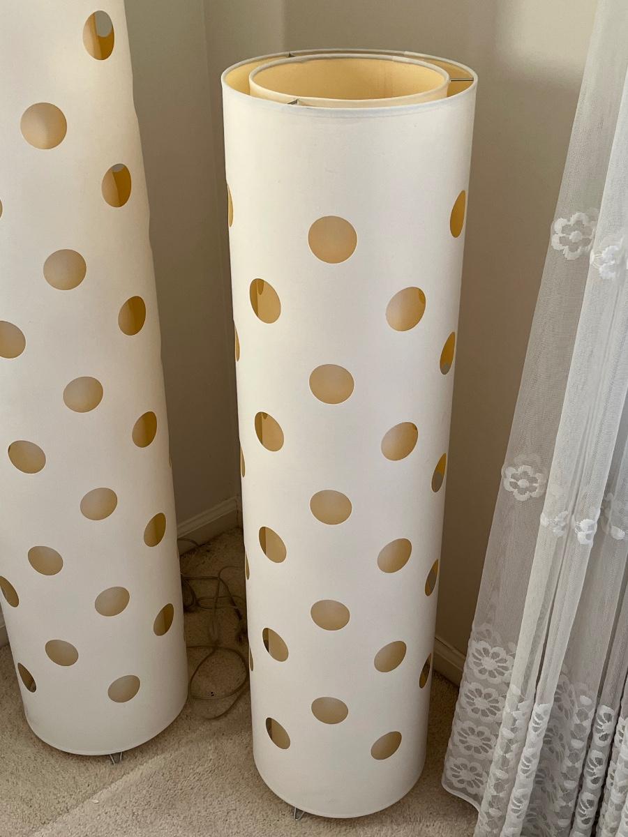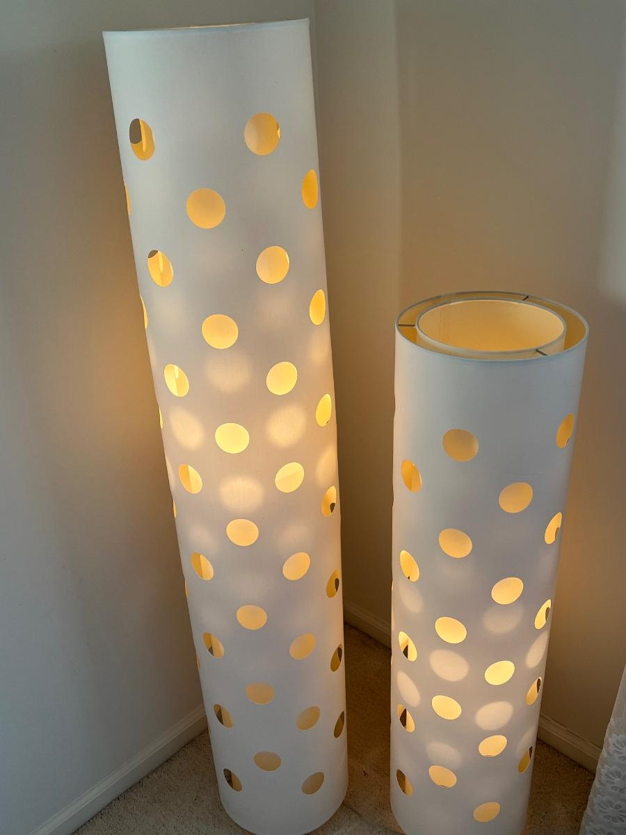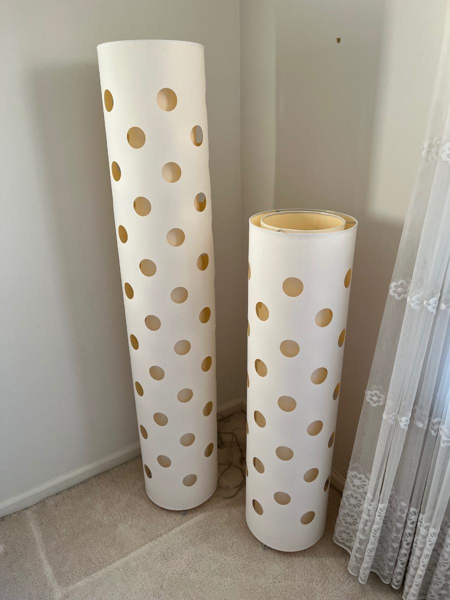 LOT 129S: Pair of Mid Century Modern Tubular Linen Shade Floor Lamps MCM