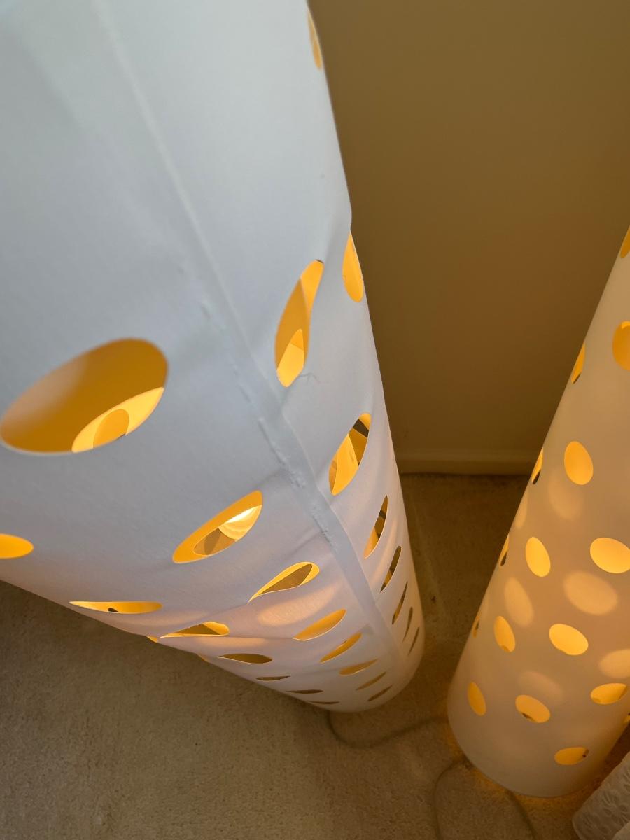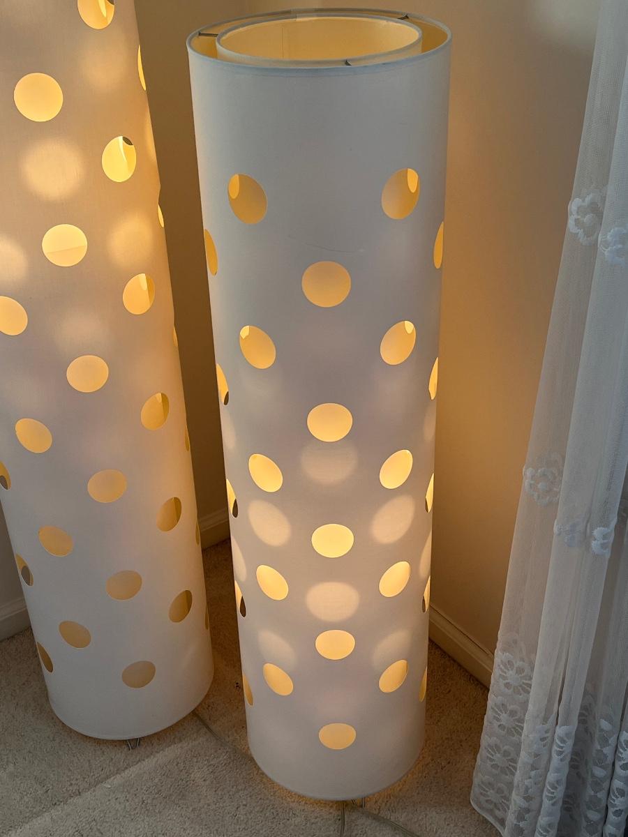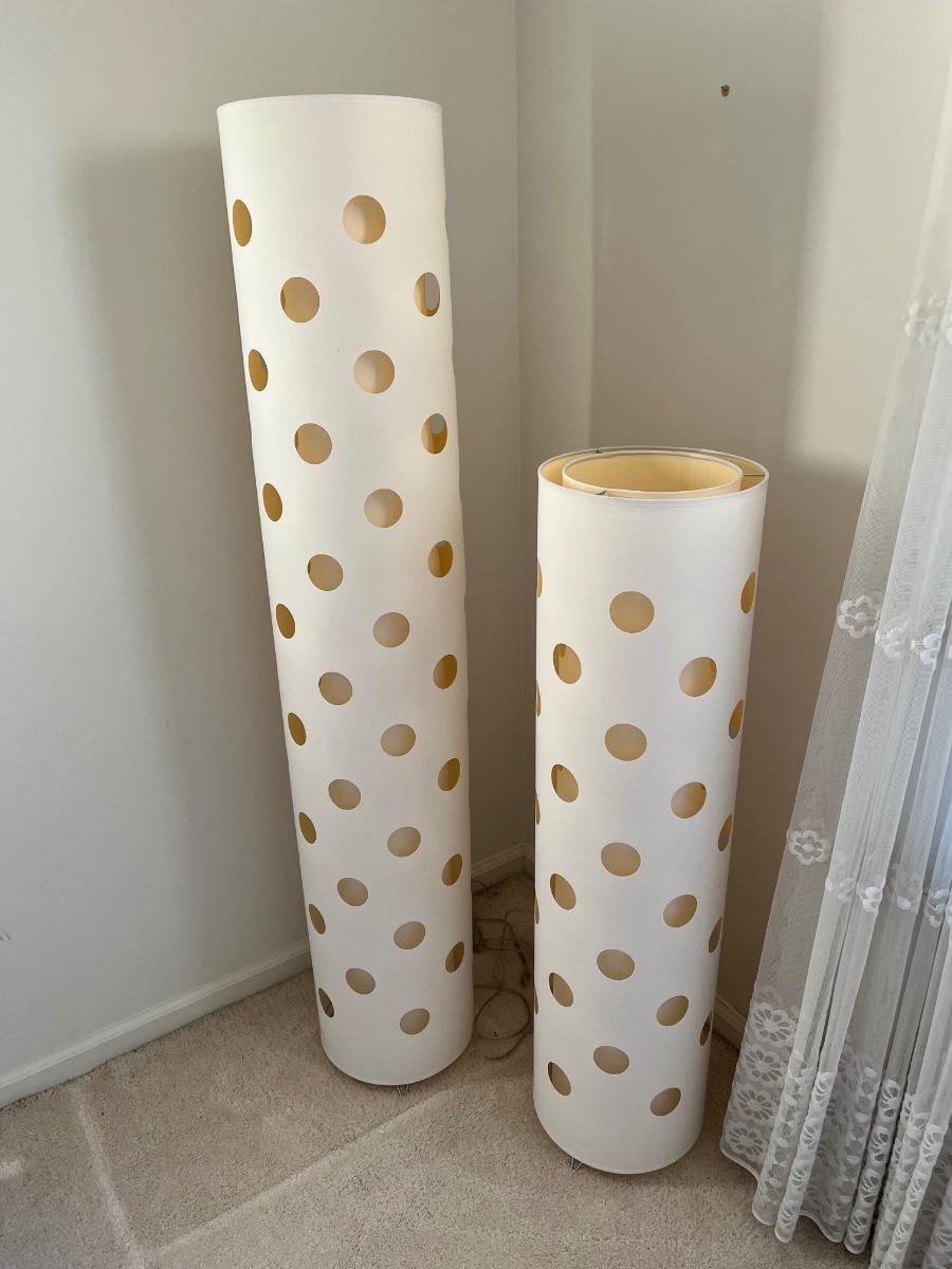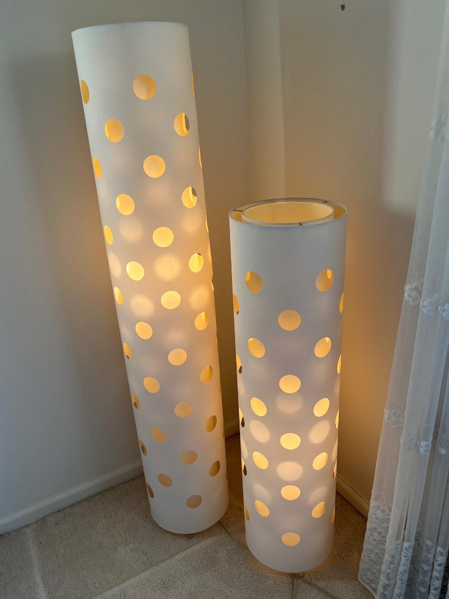 LOT 129S: Pair of Mid Century Modern Tubular Linen Shade Floor Lamps MCM
